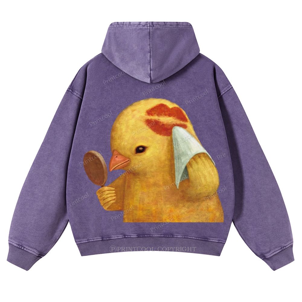A Chichen Being Kissed Casual Washed Hoodie