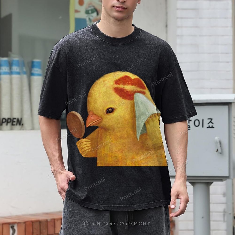 A Chichen Being Kissed Unisex Vintage Washed Tee