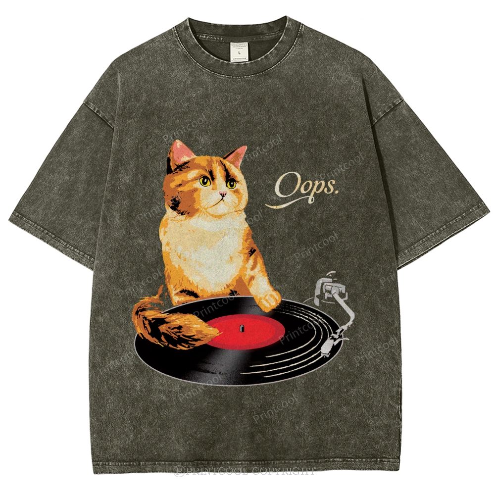 Punk Cat Illustration Unisex Vintage Washed Tee