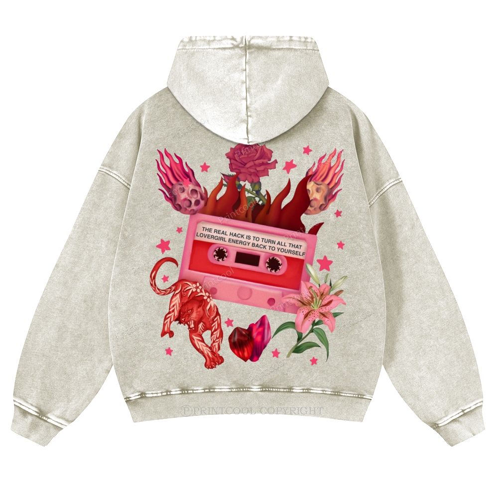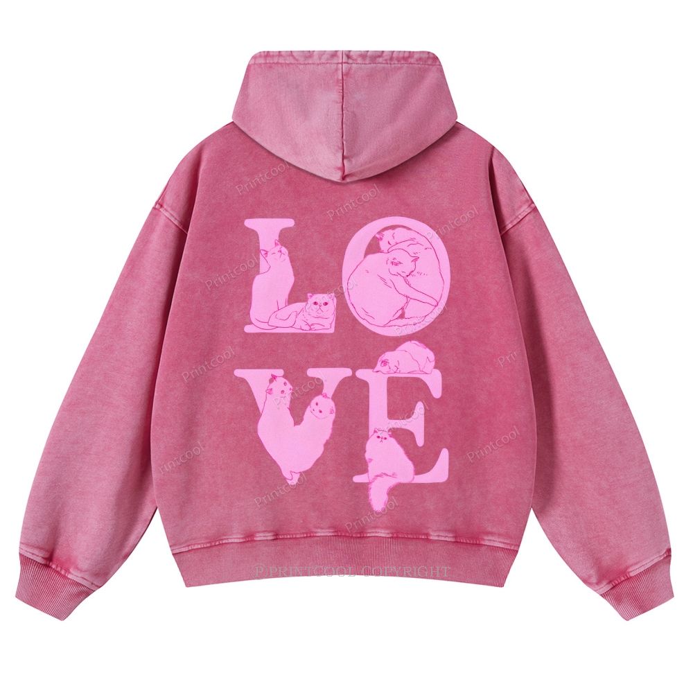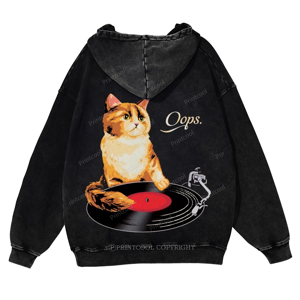 Rock Star Cat Performance Casual Washed Hoodie