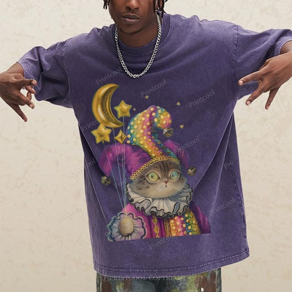 Magic Cat Illustration Unisex Vintage Washed Tee