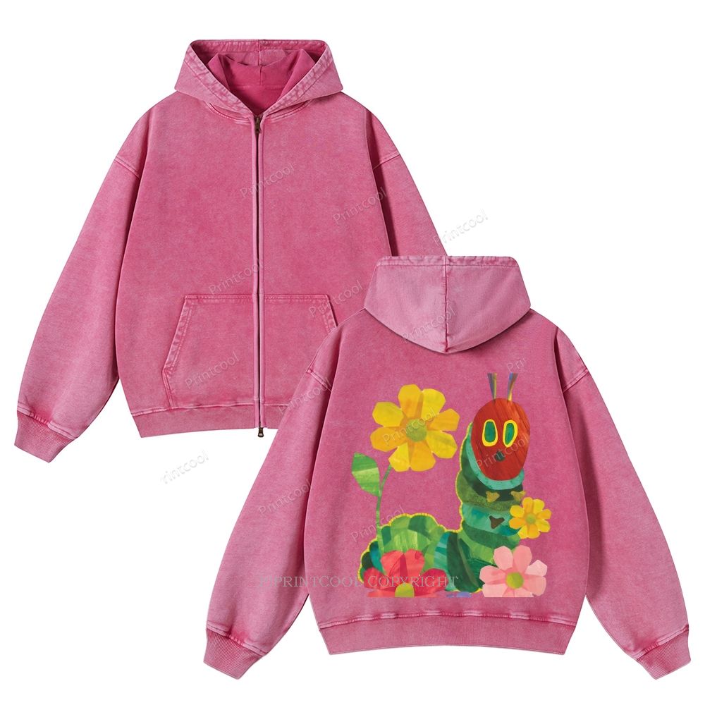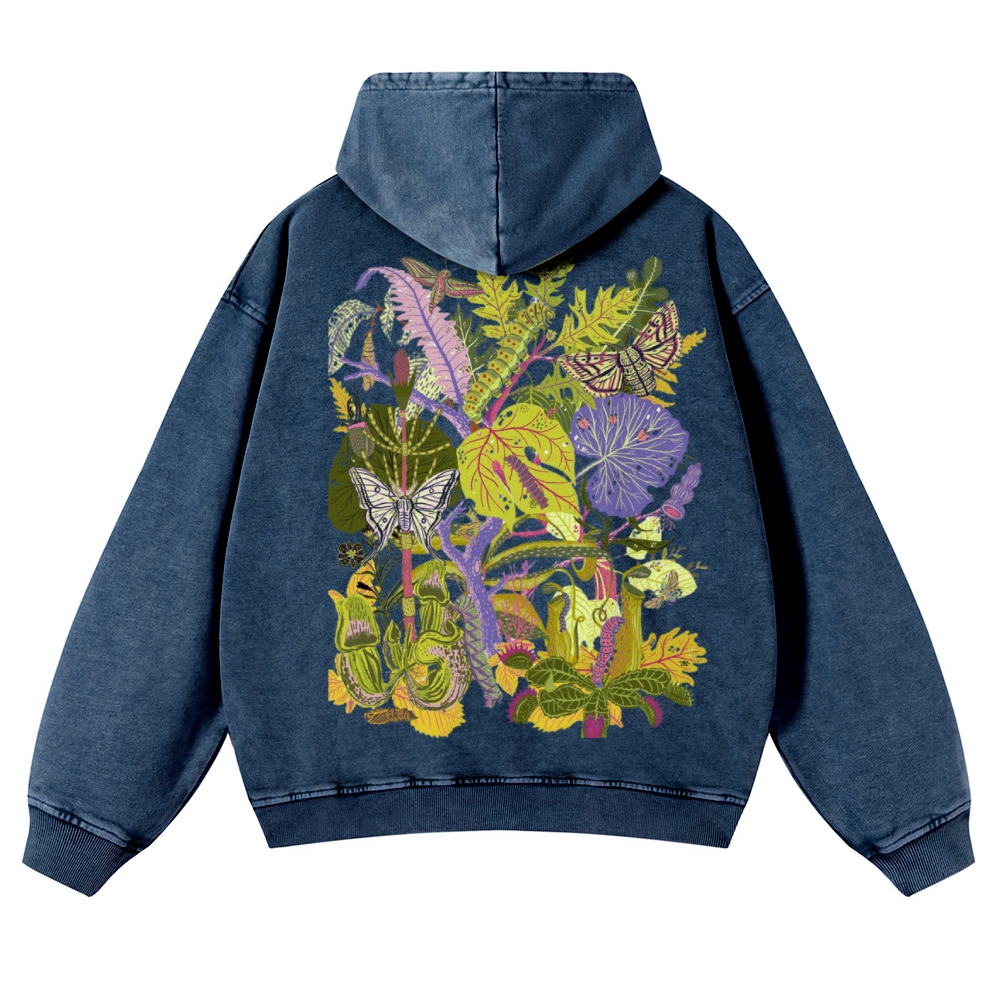 Caterpillar and Flower Collage Casual Washed Hoodie