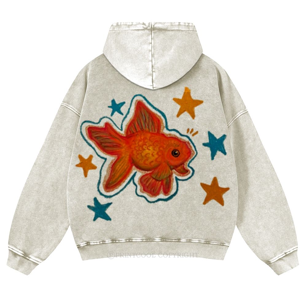 Cute Goldfish Back Print Casual Washed Hoodie