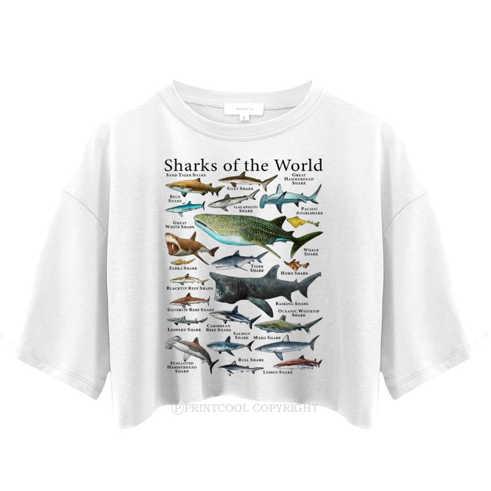 Orange Themed Shark Fun Women's Crop Tops