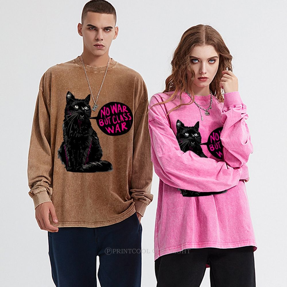 No War But Class War Unisex Casual Washed Printed Long Sleeve T-shirt