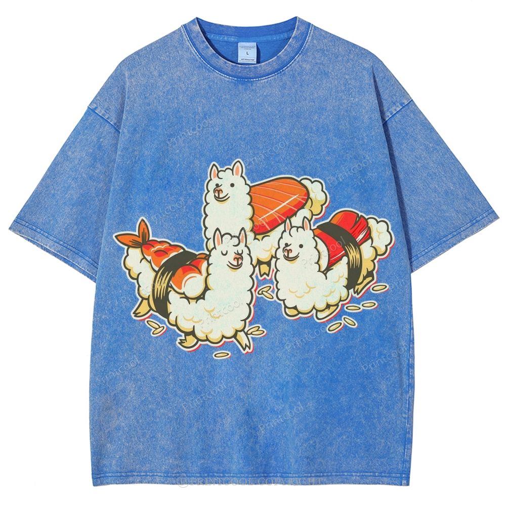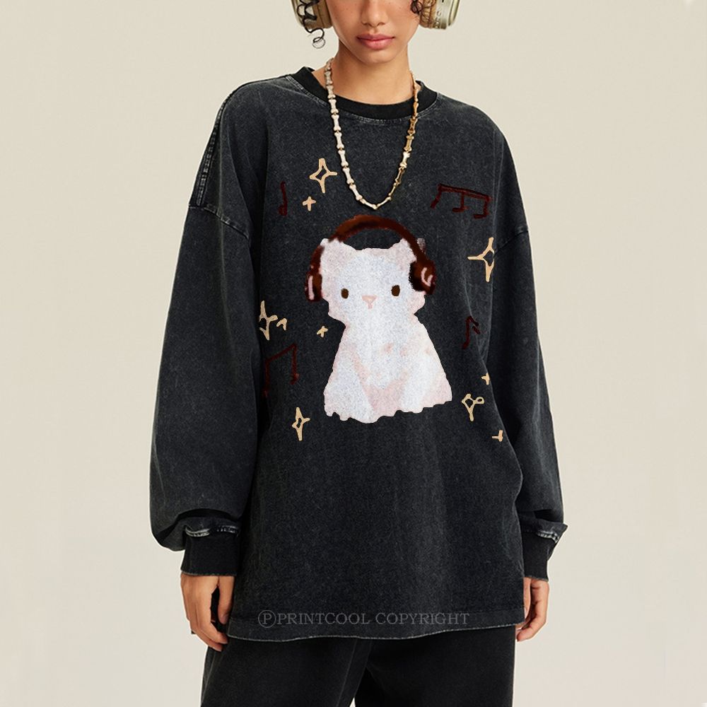 Cute Shark Unisex Casual Washed Printed Long Sleeve T-shirt