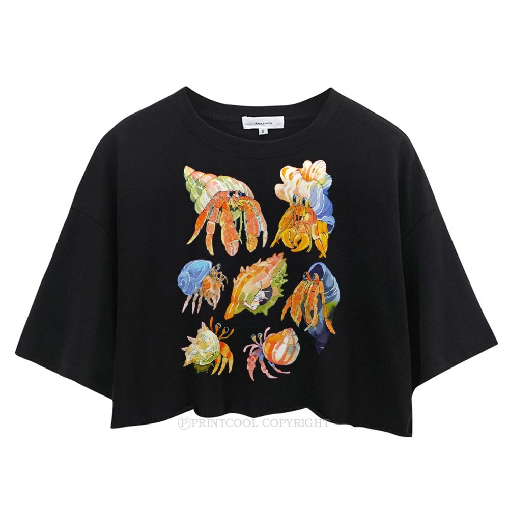 Charming Hermit Crabs In Shells Women's Crop Tops