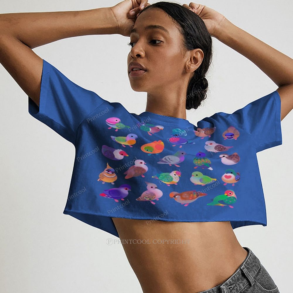 Lots Of Colorful Bird Prints Women's Crop Tops