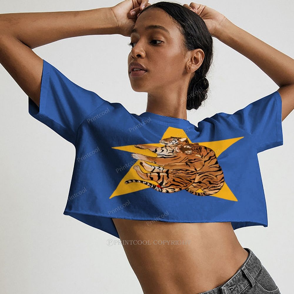 Two Tigers Hugging On A Yellow Star Women's Crop Tops