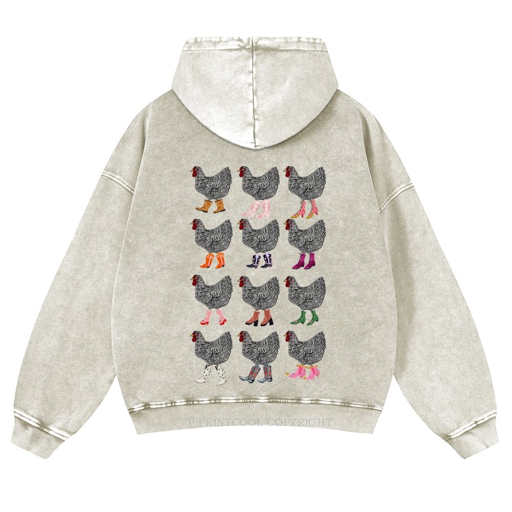Chickens in Stylish Boots Collection Casual Washed Hoodie