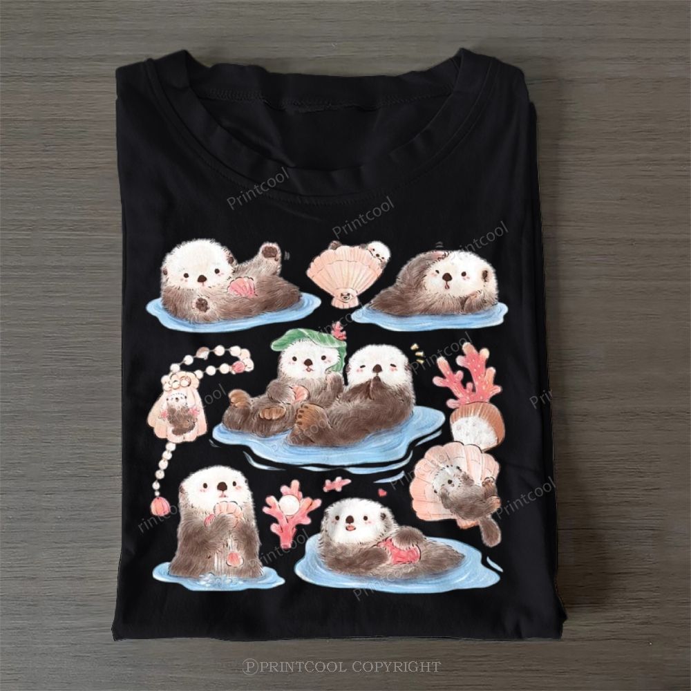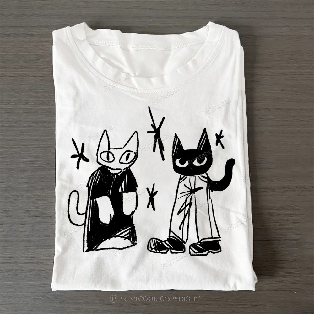 Cat And Seagull Casual Cotton T-Shirt