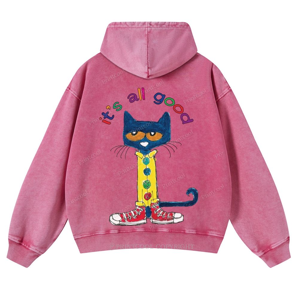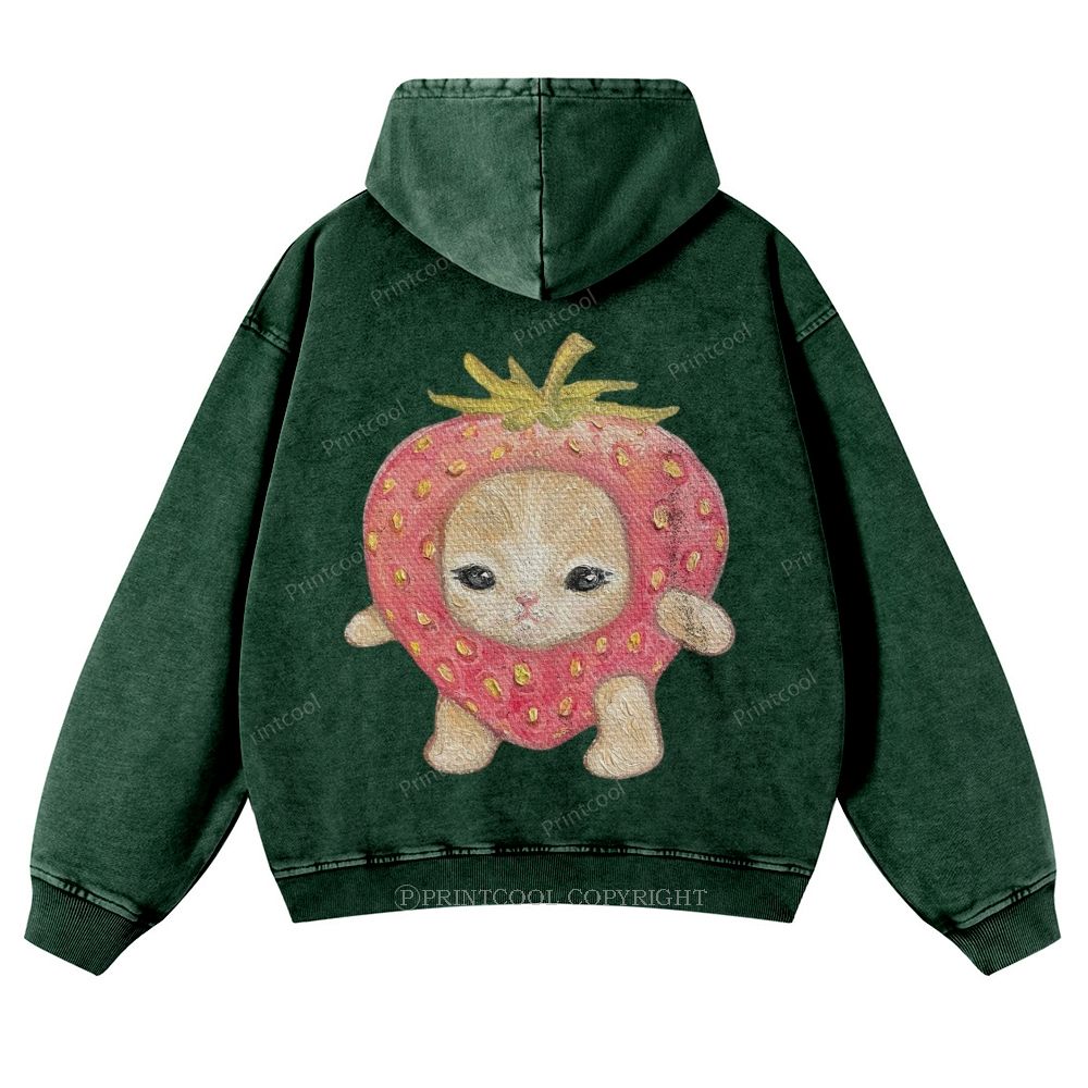 A Kitten Wearing A Strawberry-Shaped Costume Casual Washed Hoodie