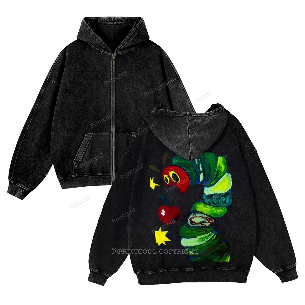 Hungry Caterpillar Unisex Washed Cotton Zip Up Hoodie