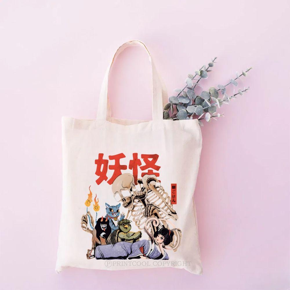 Japanese Yokai Breakfast Humor Illustration Tote Bag