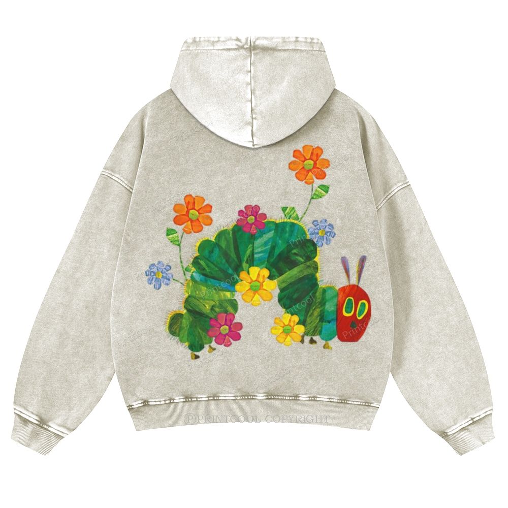 Caterpillars With Flowers On Their Bodies Casual Washed Hoodie