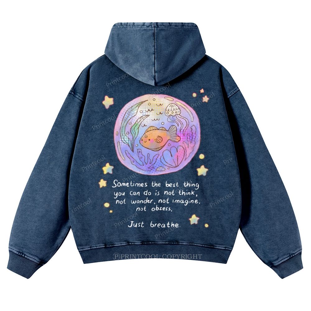 Jellyfish Back Print Casual Washed Hoodie