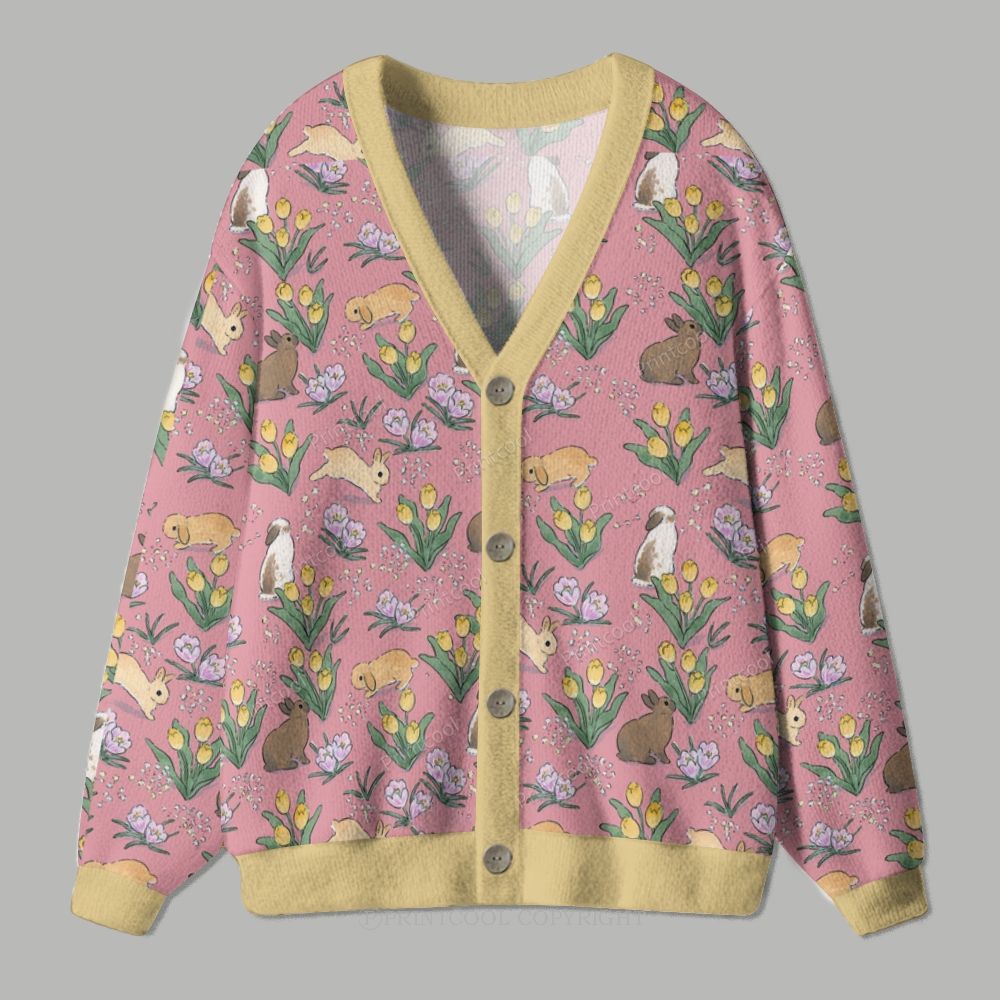 Bunny Floral Meadow Dream Ugly Cardigan Sweater