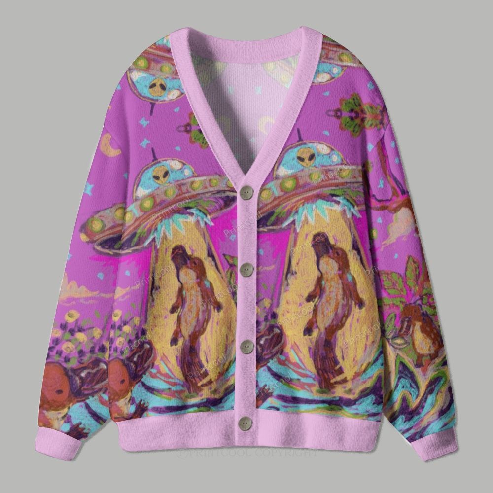 Purple Prickly Hedgehog Garden Party Ugly Cardigan Sweater
