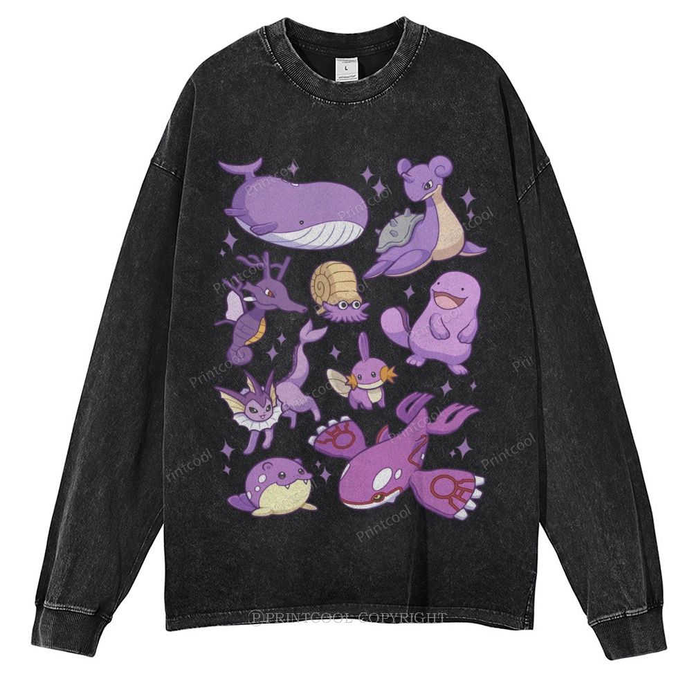 Colorful Ghibli Creatures Unisex Casual Washed Printed Long Sleeve T-shirt