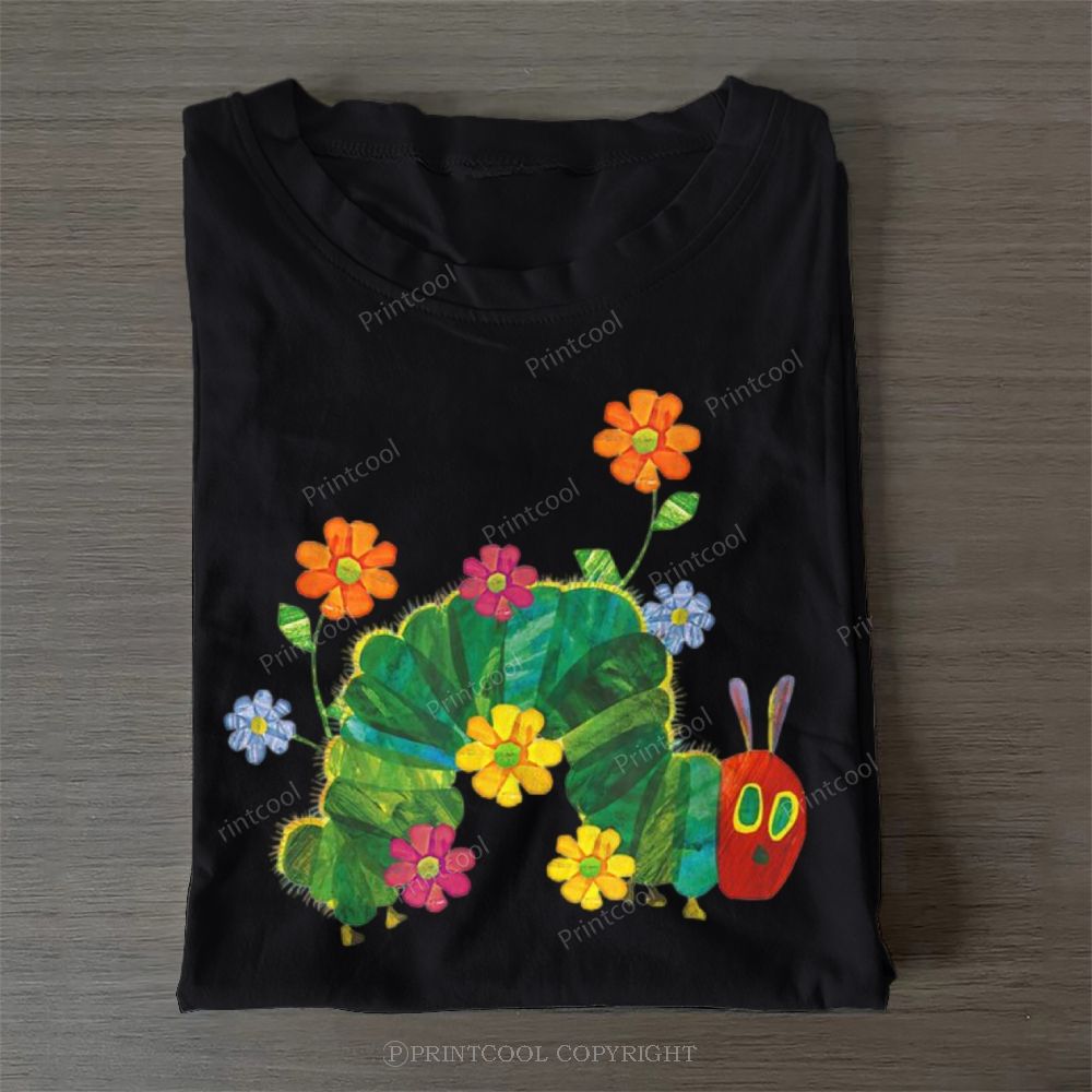 Caterpillars With Flowers On Their Bodies Casual Cotton T-Shirt