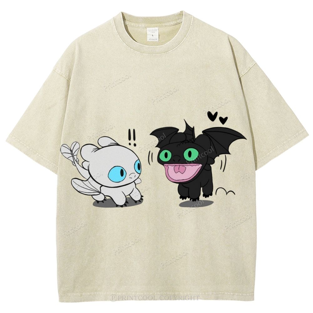 Toothless And Light Fury Unisex Vintage Washed Tee