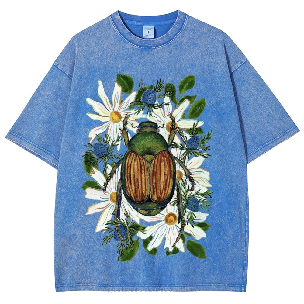 Colorful Insects: Beetle Edition Unisex Casual Washed Printed Long Sleeve T-shirt