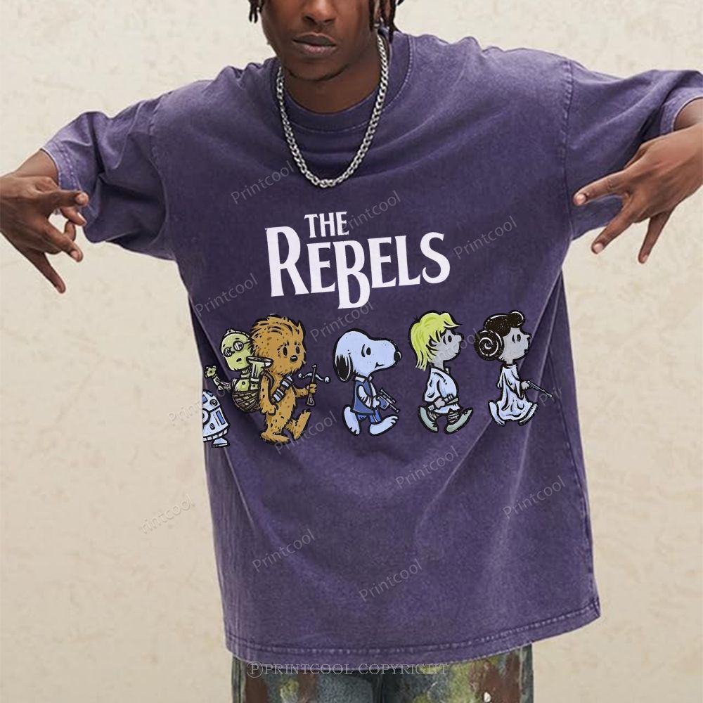 Snoopy Beatles Tribute Design Unisex Casual Washed Printed Long Sleeve T-shirt