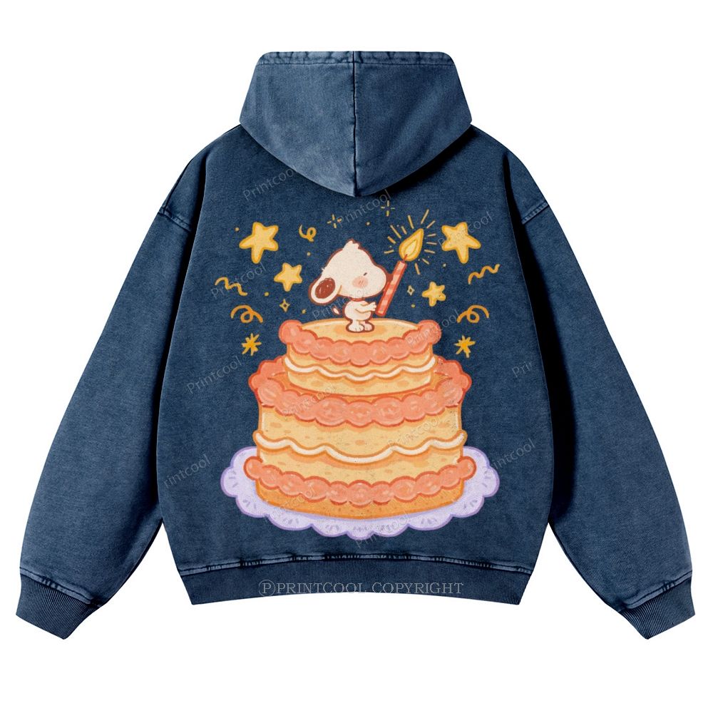 Cute Dinosaurs Back Print Casual Washed Hoodie
