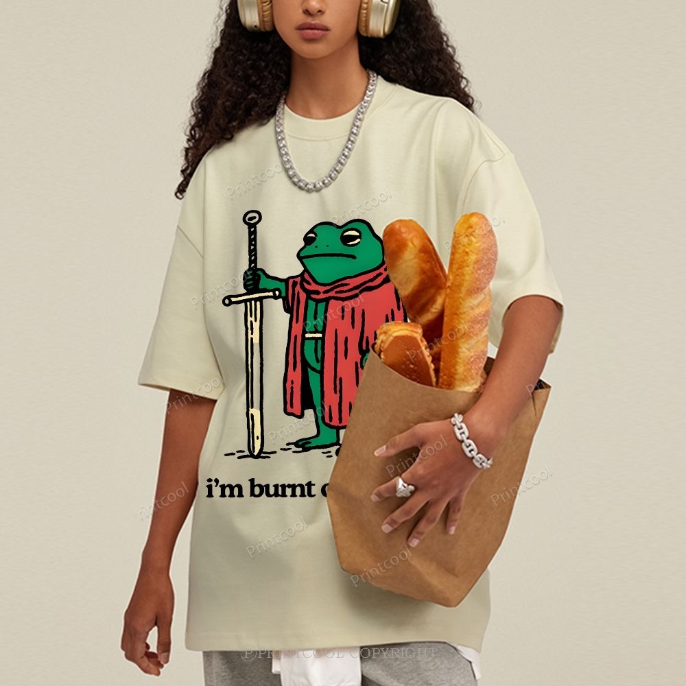 Frog Walking In The Rain Unisex Casual Washed Printed Long Sleeve T-shirt