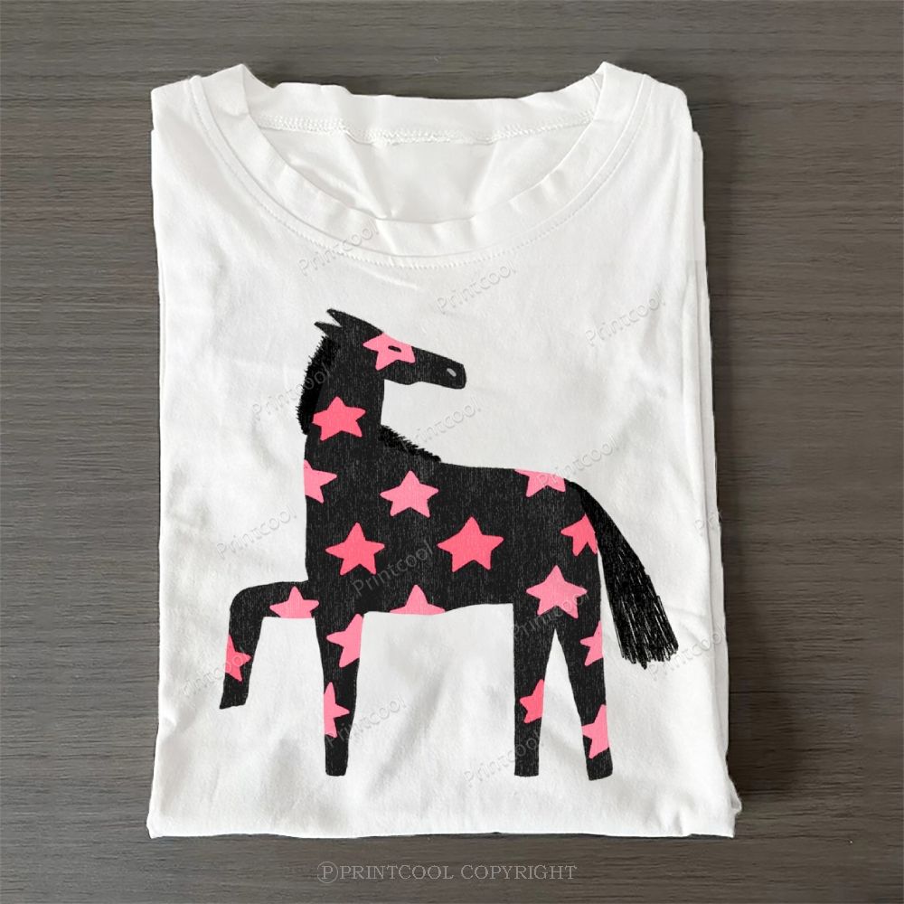 Pink Star Horse Casual Washed Hoodie