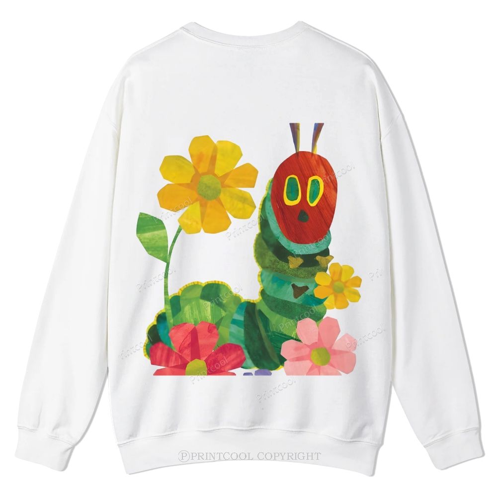 Caterpillar and Flower Collage Casual Crewneck Sweatshirt