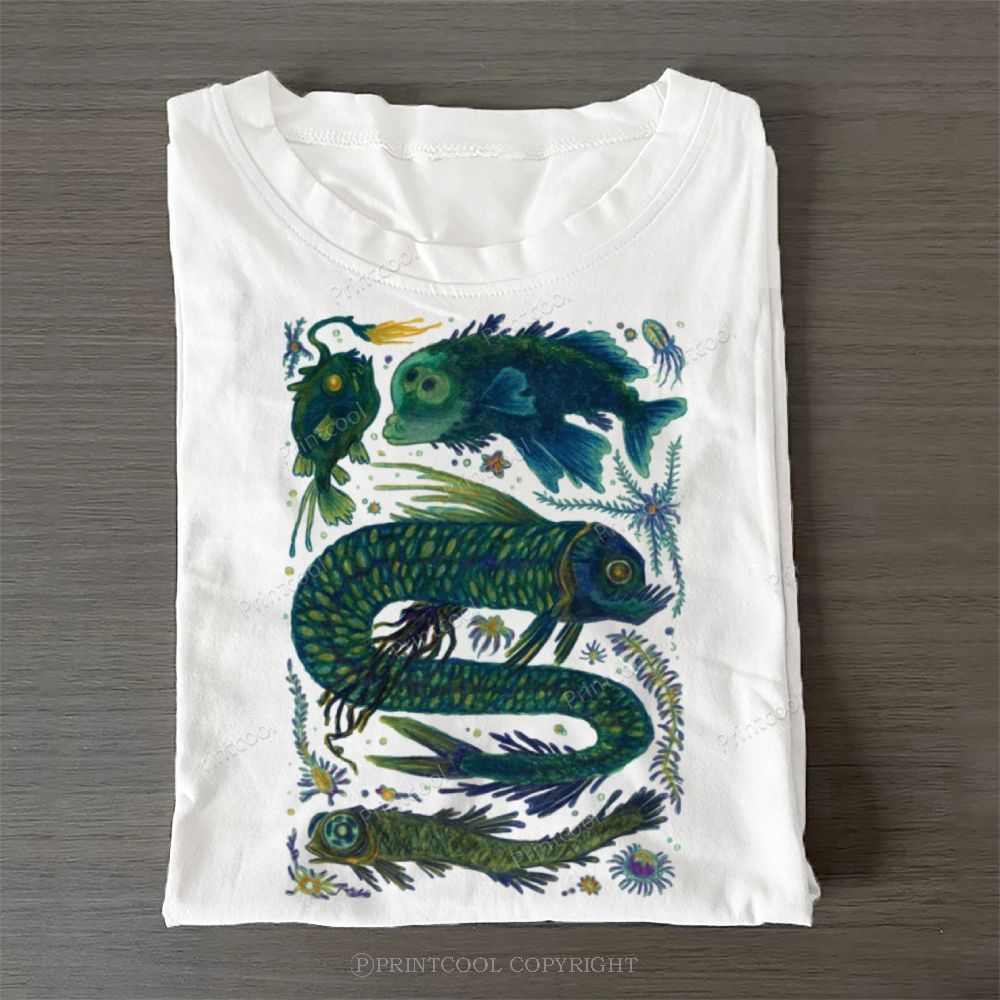 Caterpillar and Flower Collage Casual Cotton T-Shirt