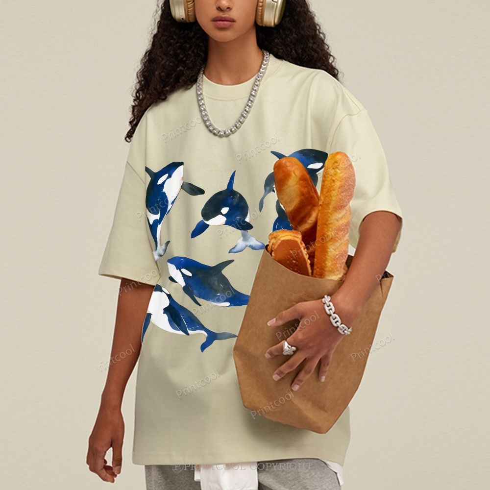 Ink Blue Watercolor Orca Unisex Vintage Washed Tee