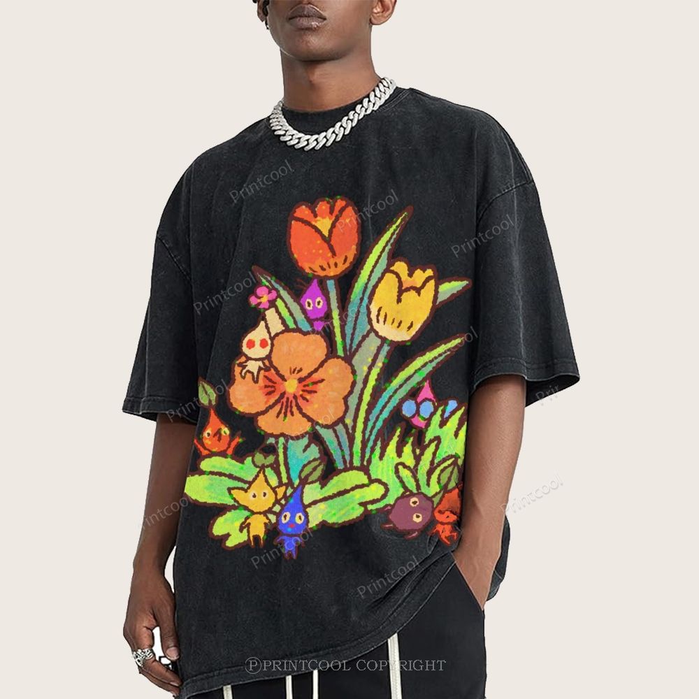 Flower Field Pikmin Unisex Vintage Washed Tee