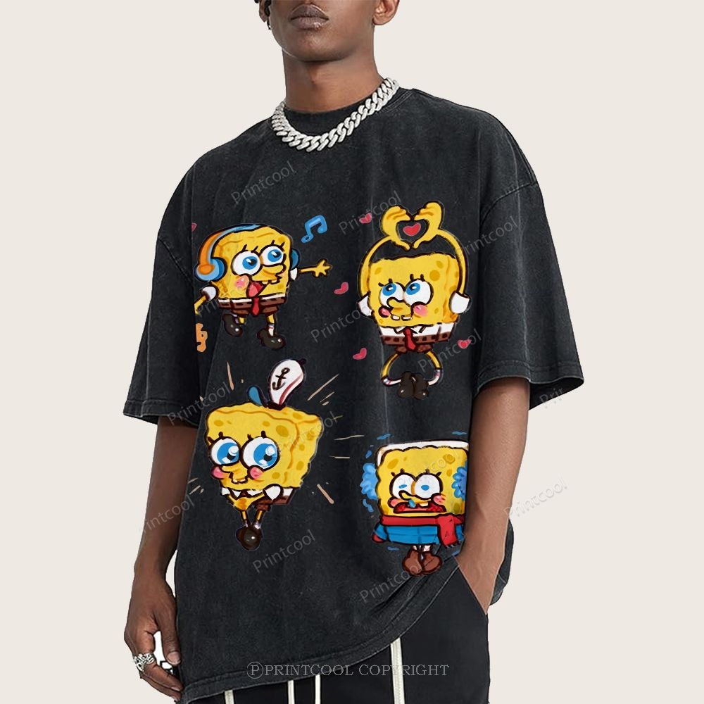 Spongebob's Adorable Daily Life Unisex Vintage Washed Tee