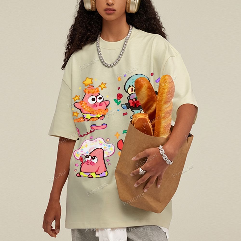 Patrick And Spongebob's Afternoon Tea Unisex Vintage Washed Tee