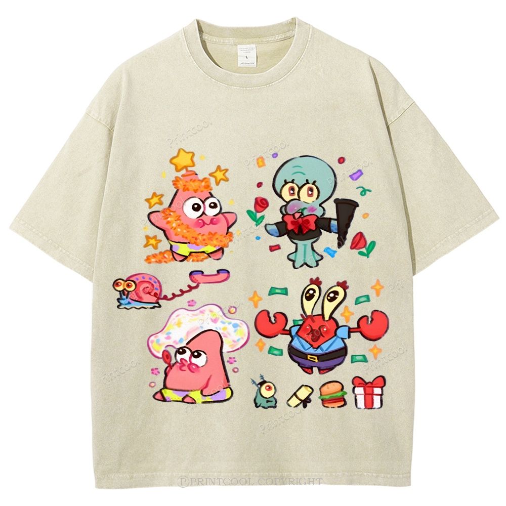 Squidward Mr. Krabs And Gary Unisex Vintage Washed Tee