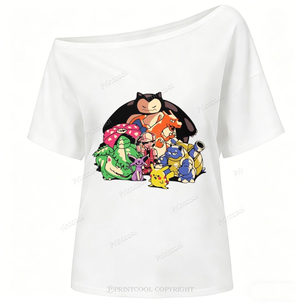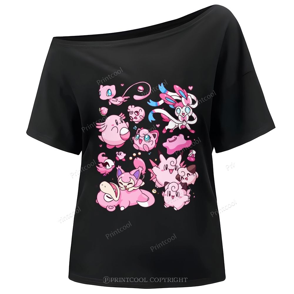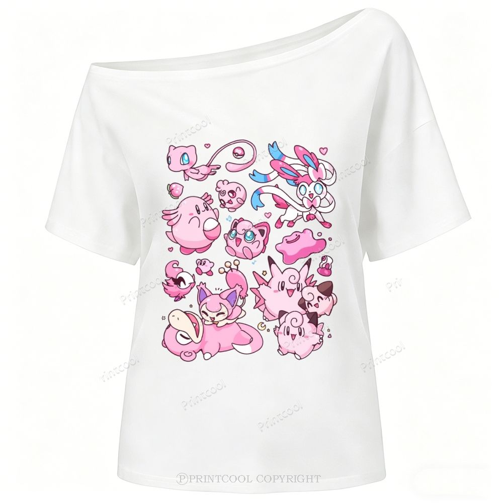 Pink Pokémon Friends One-Shoulder T-Shirt$27.99 USD