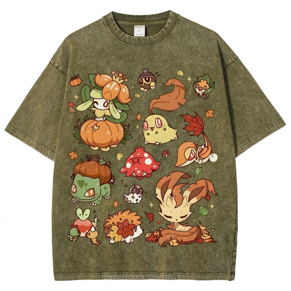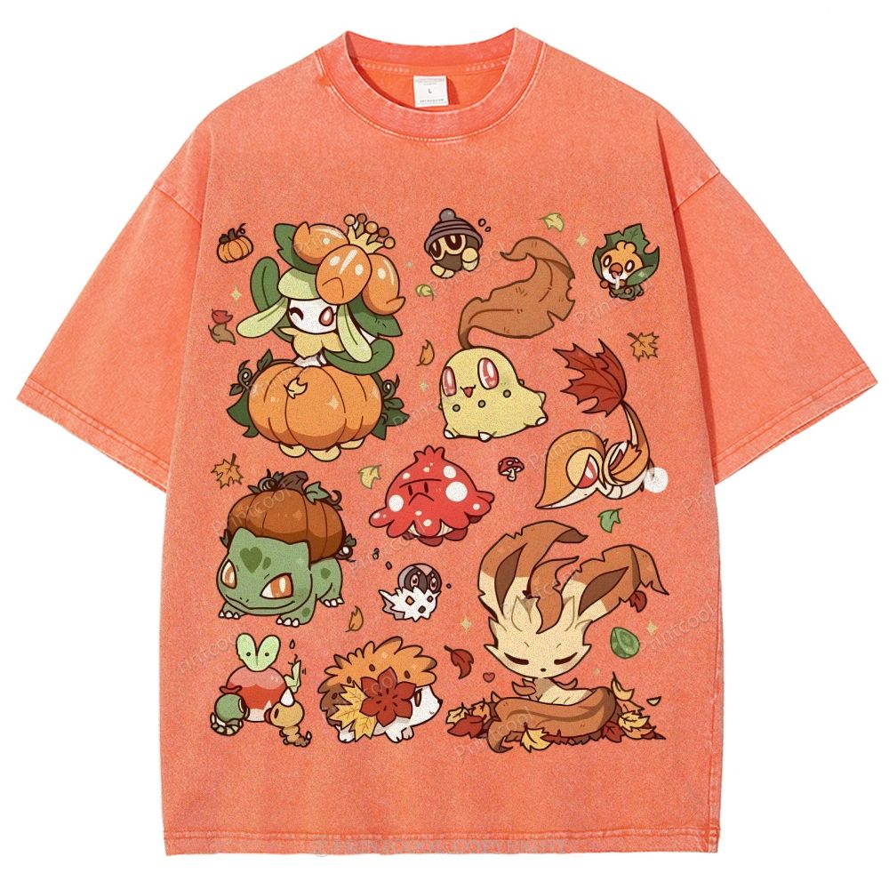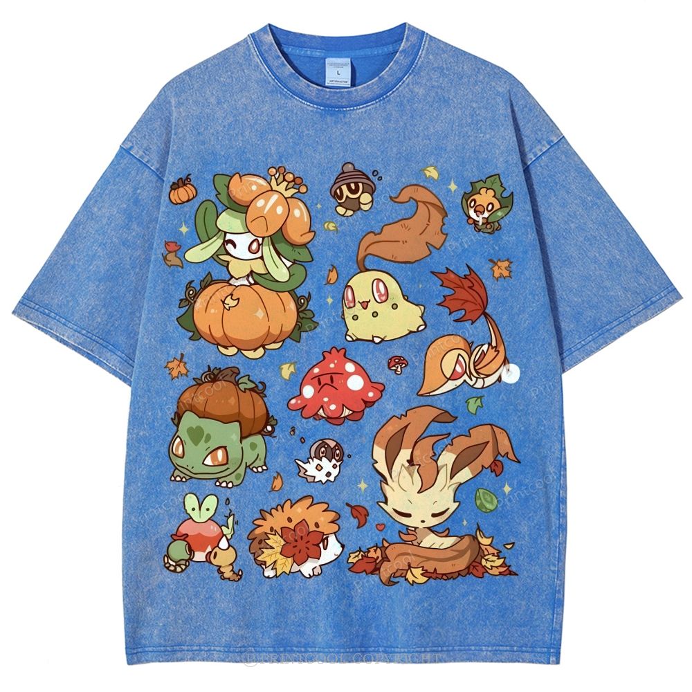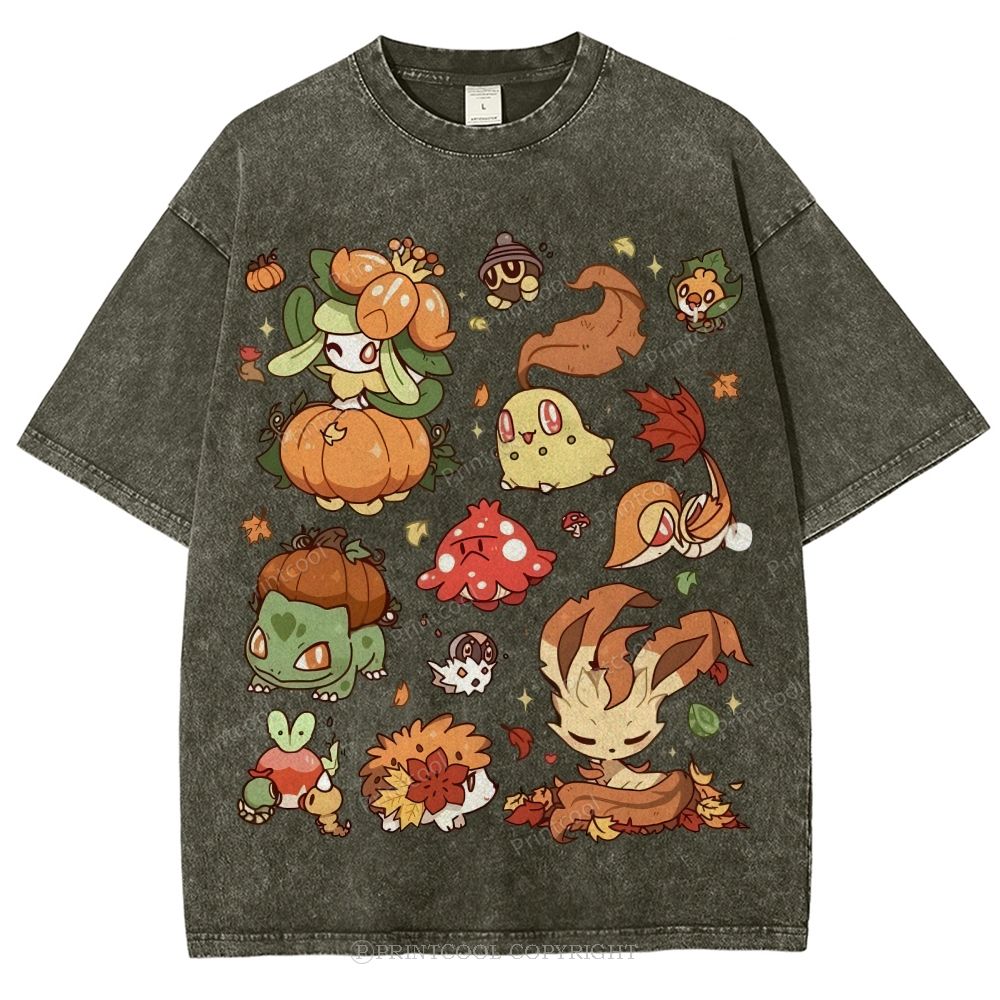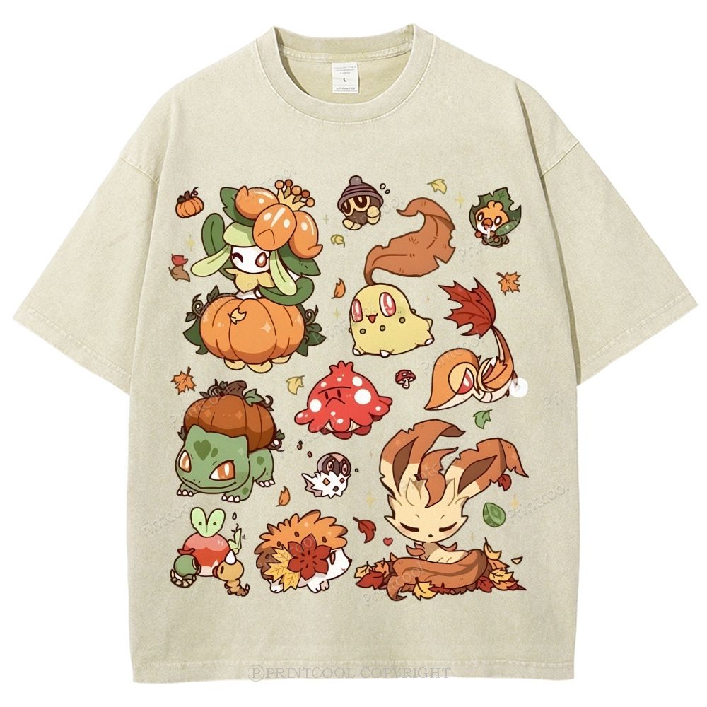 Autumn-Themed Pokémon Unisex Vintage Washed Tee