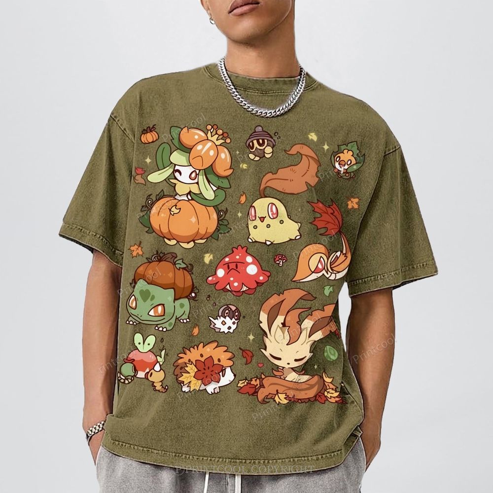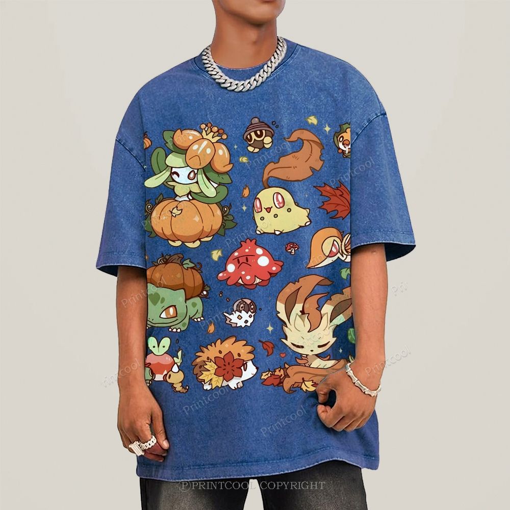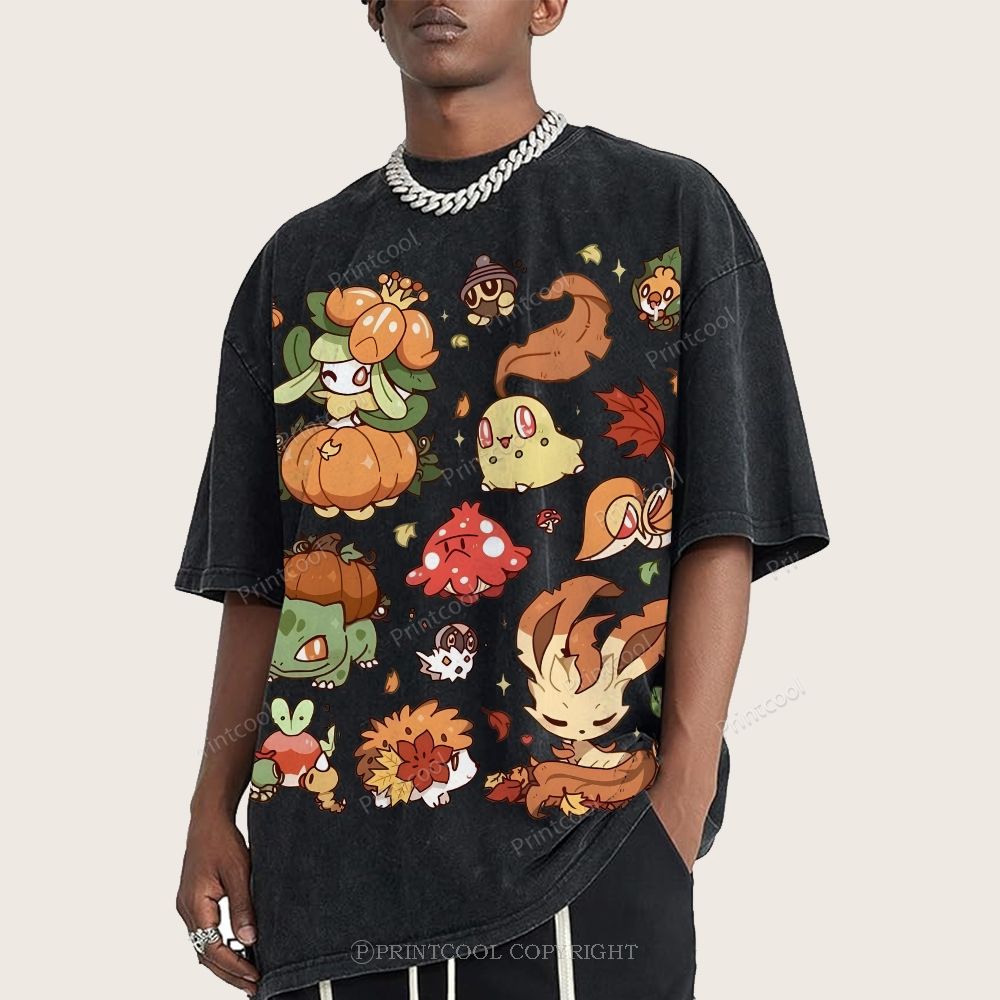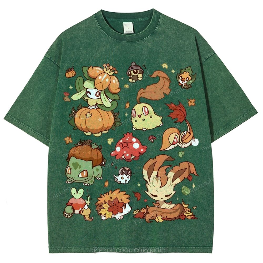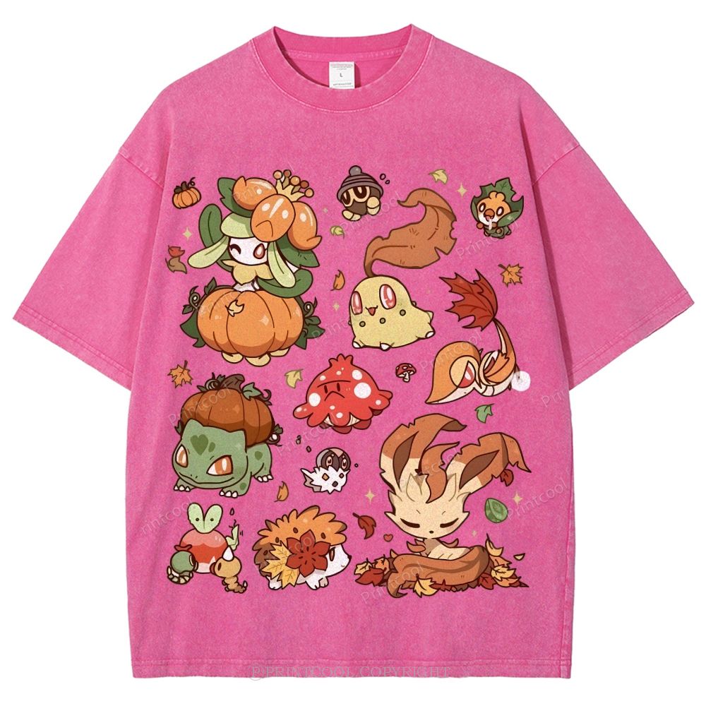 Autumn-Themed Pokémon Unisex Vintage Washed Tee