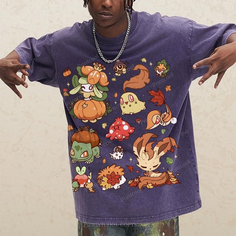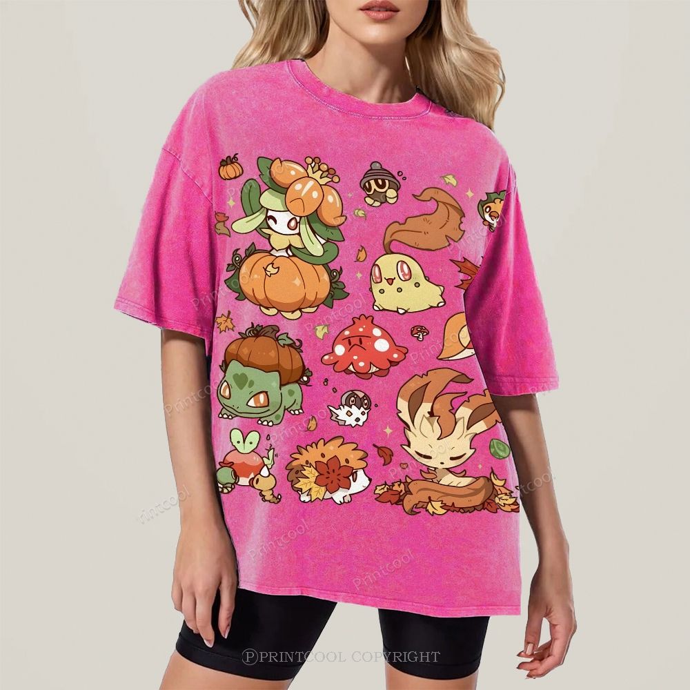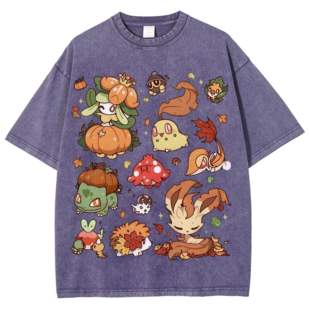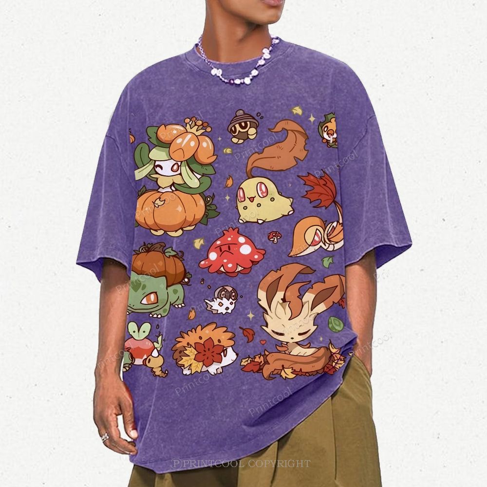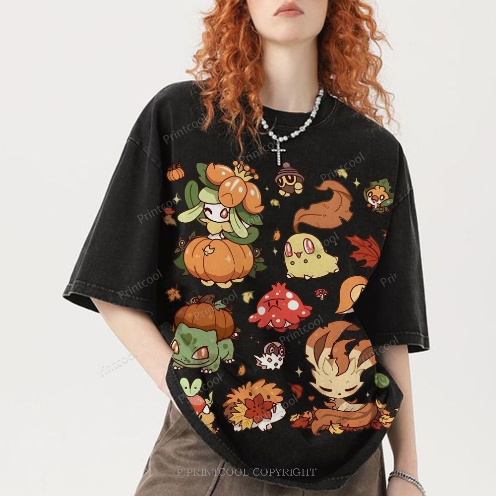 Autumn-Themed Pokémon Unisex Vintage Washed Tee