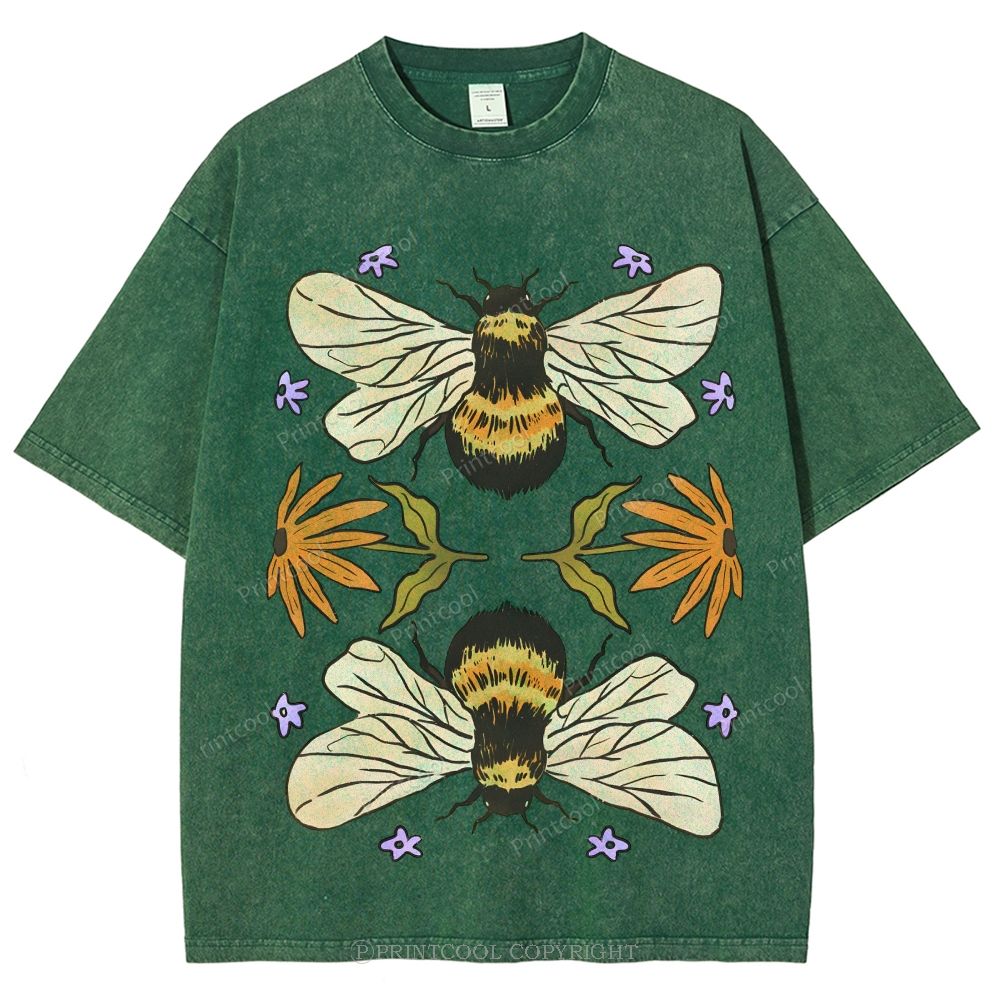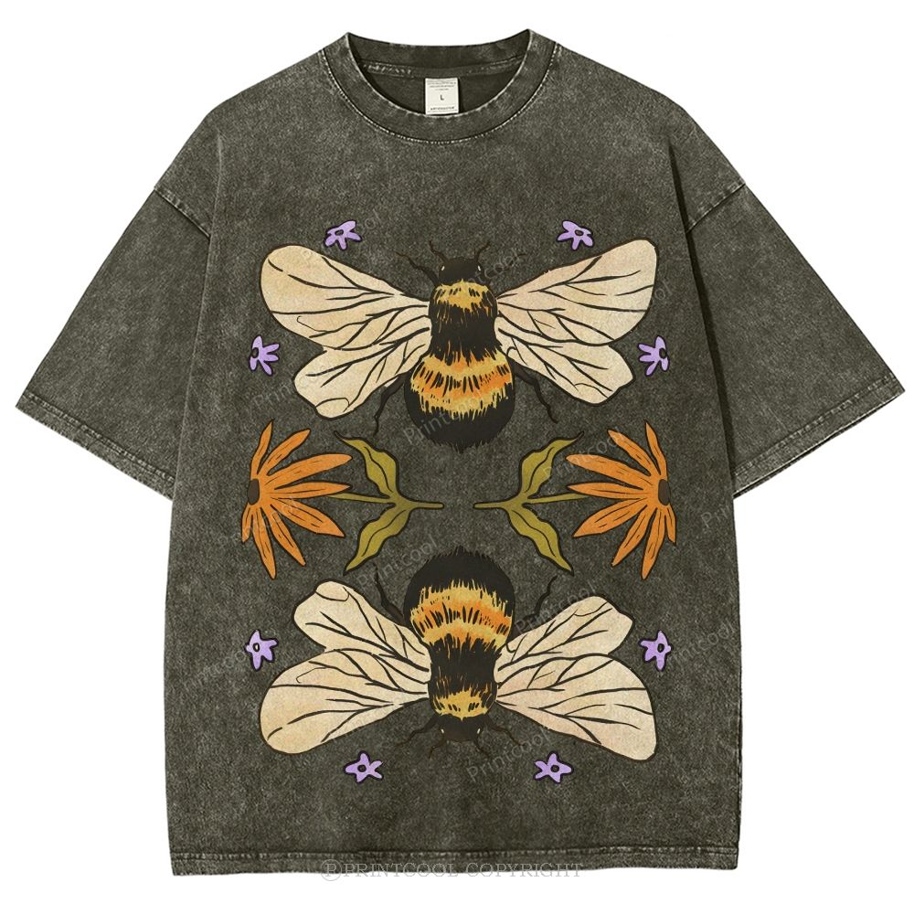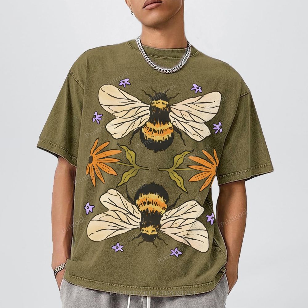 Bees And Wildflowers Unisex Vintage Washed Tee