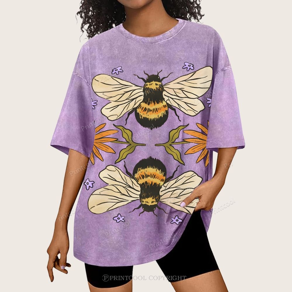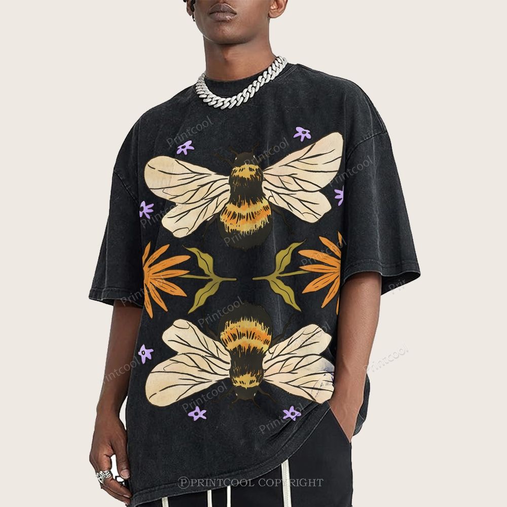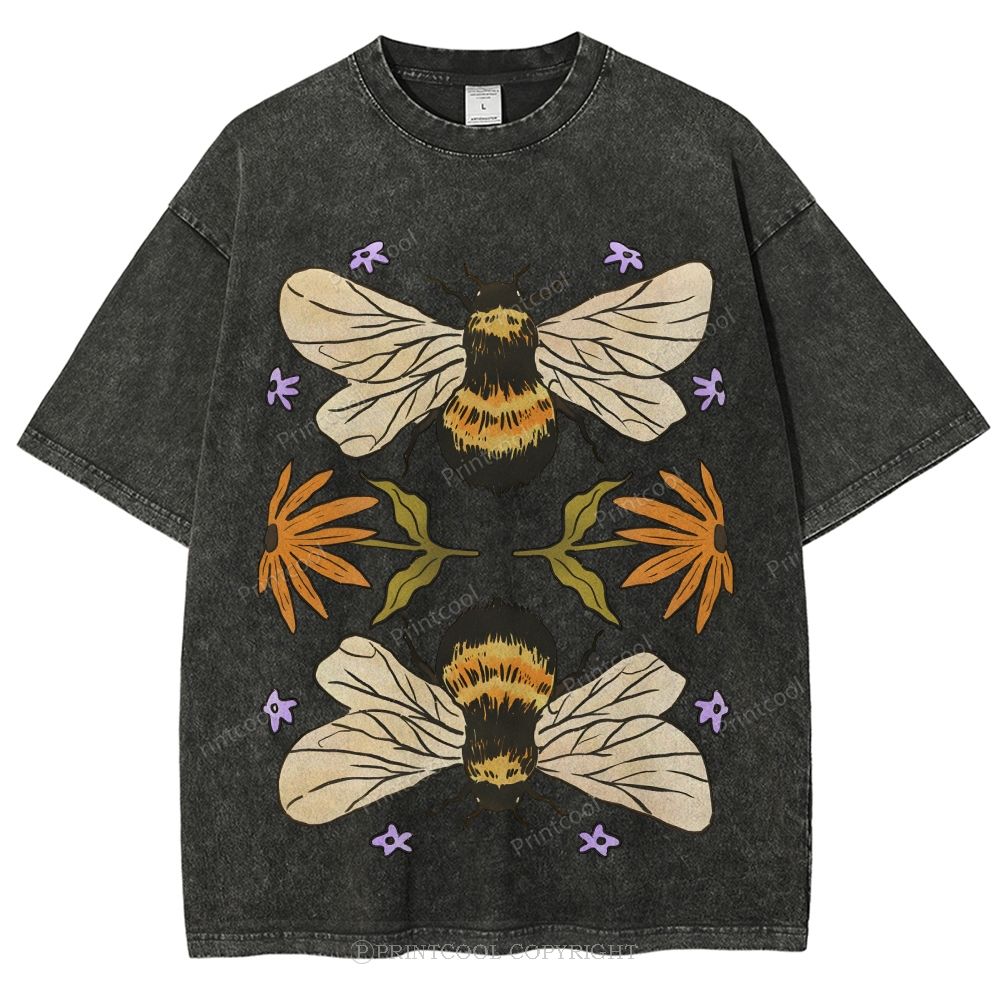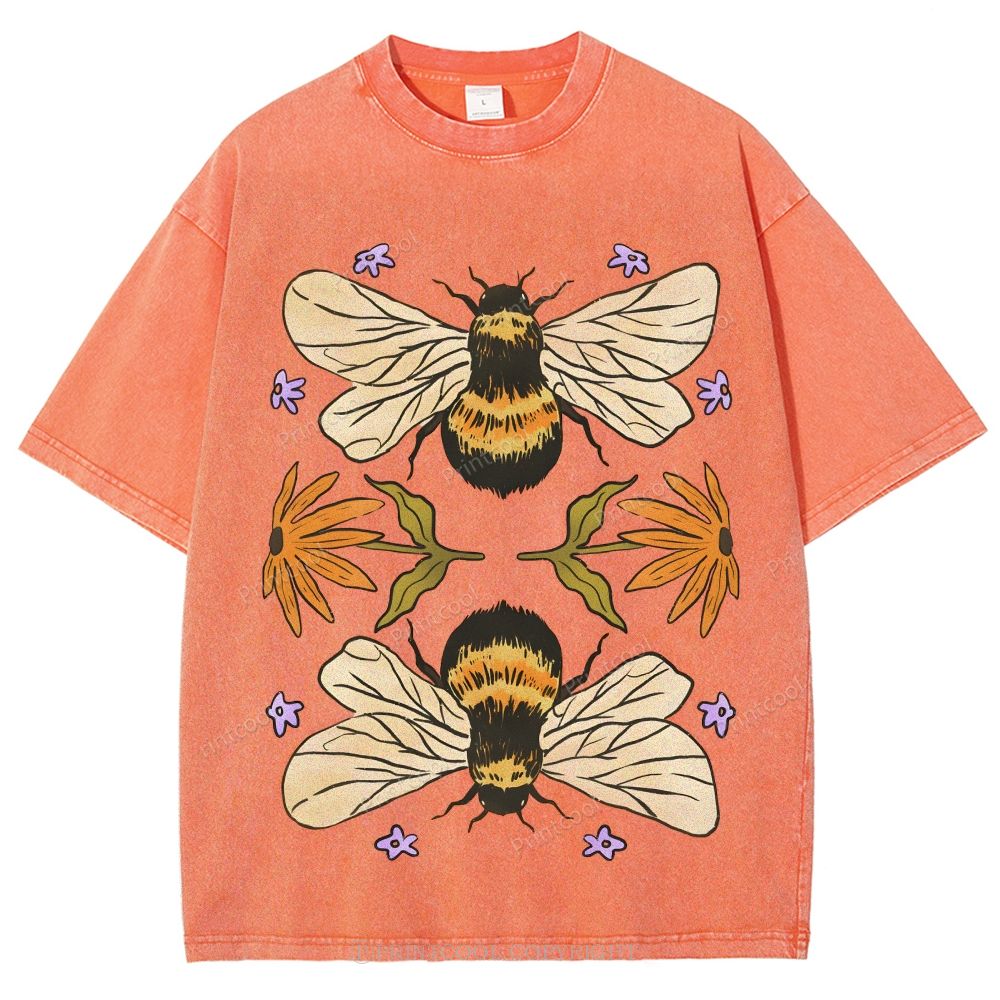 Bees And Wildflowers Unisex Vintage Washed Tee