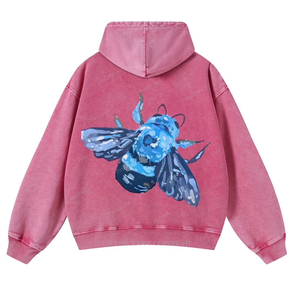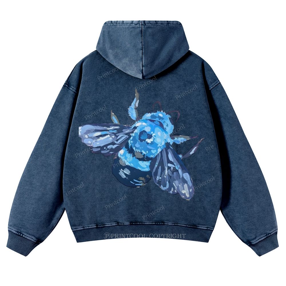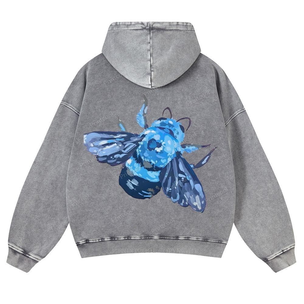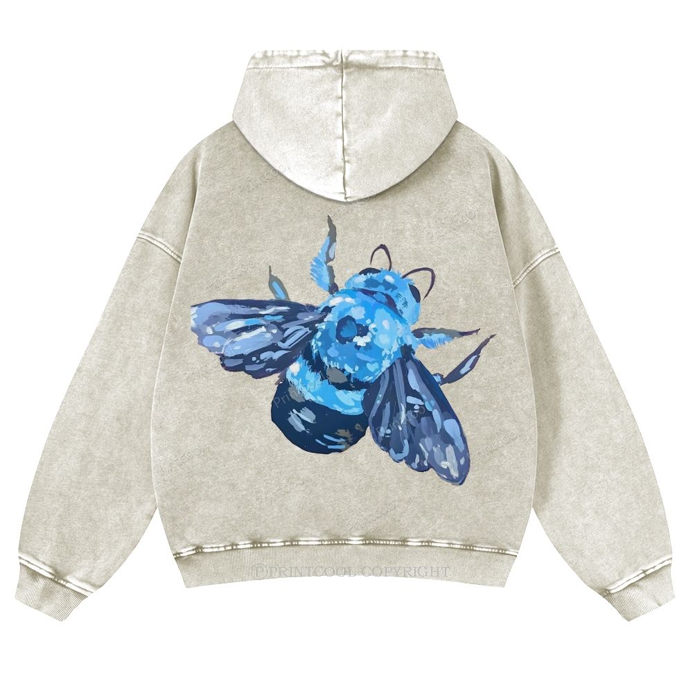Blue Wood Bee Casual Washed Hoodie