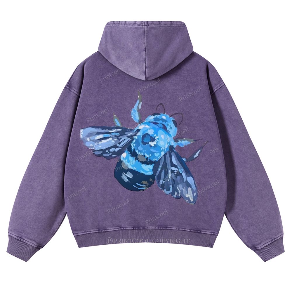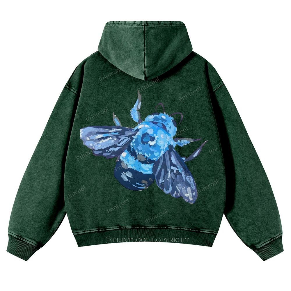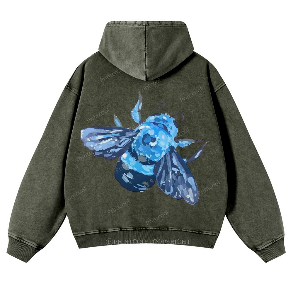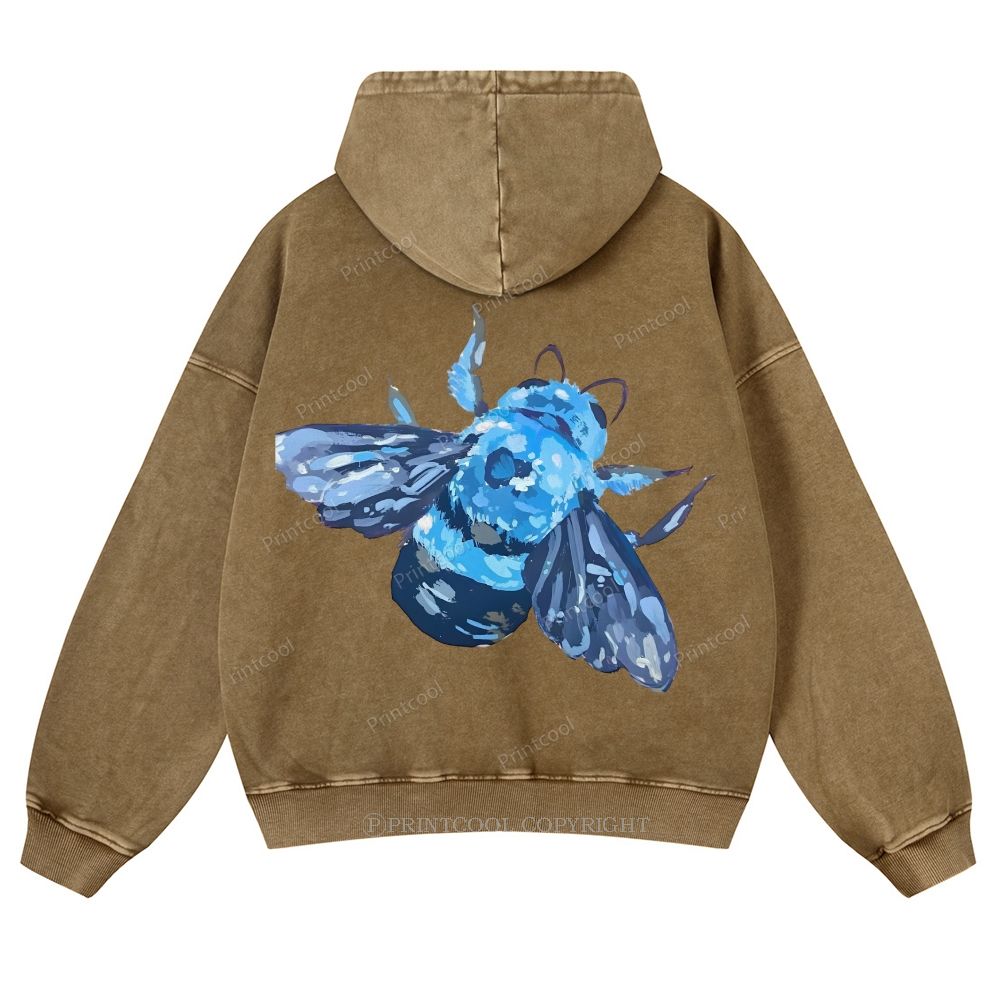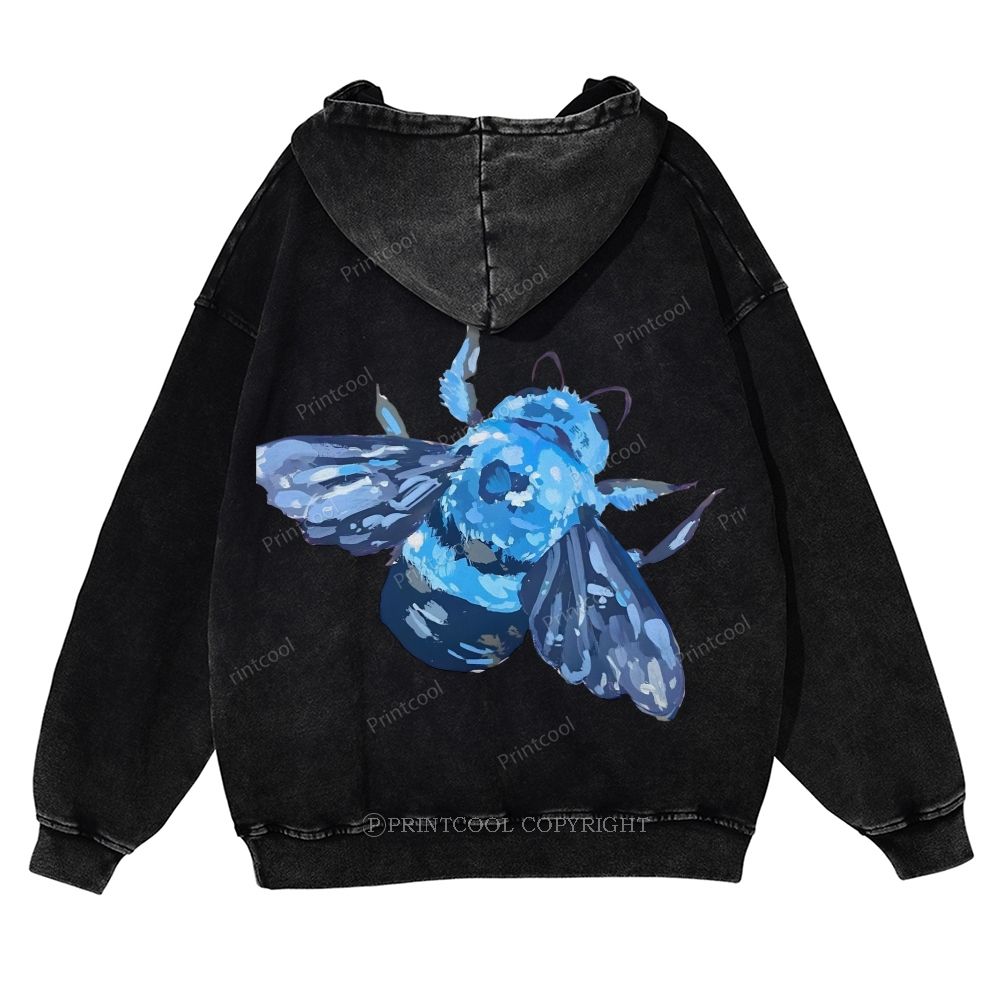 Blue Wood Bee Casual Washed Hoodie