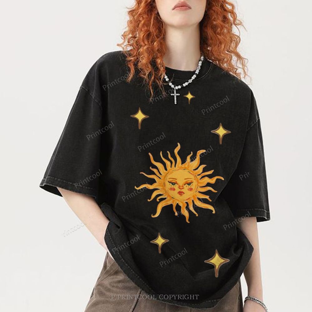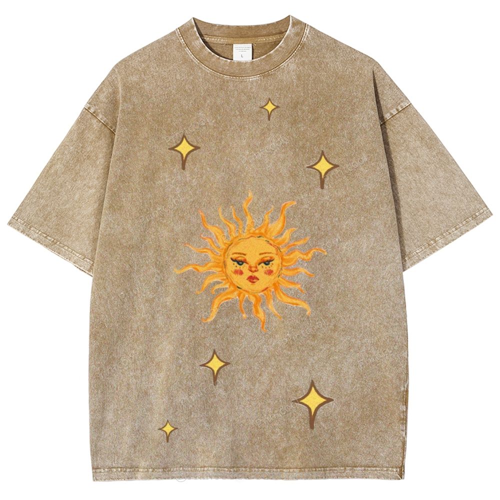 Boho Celestial Sun Unisex Vintage Washed Tee