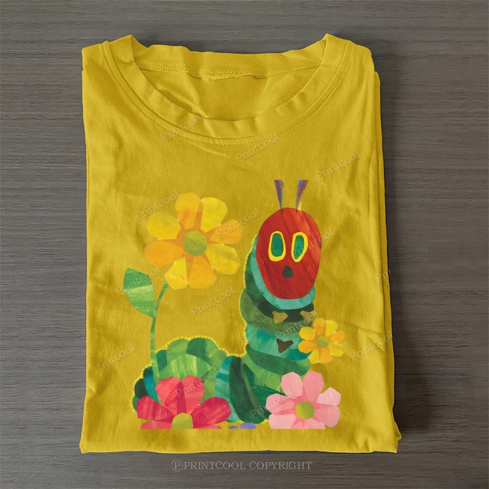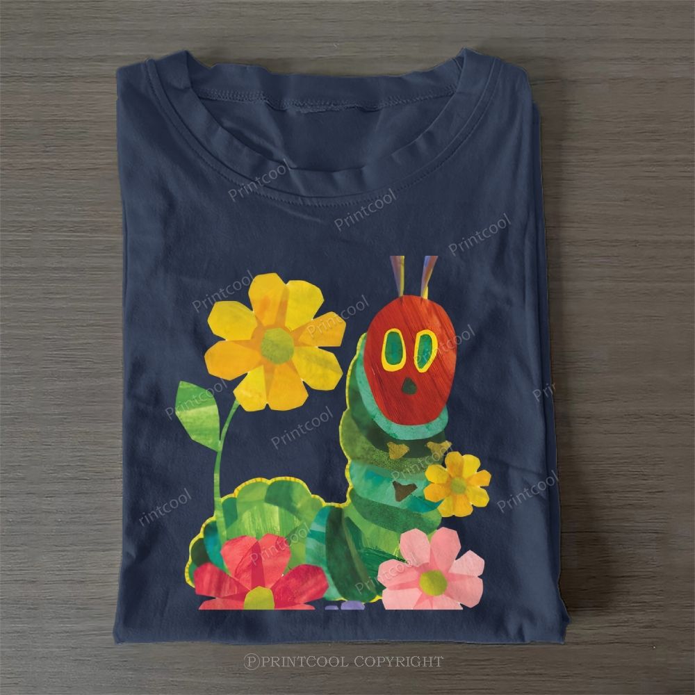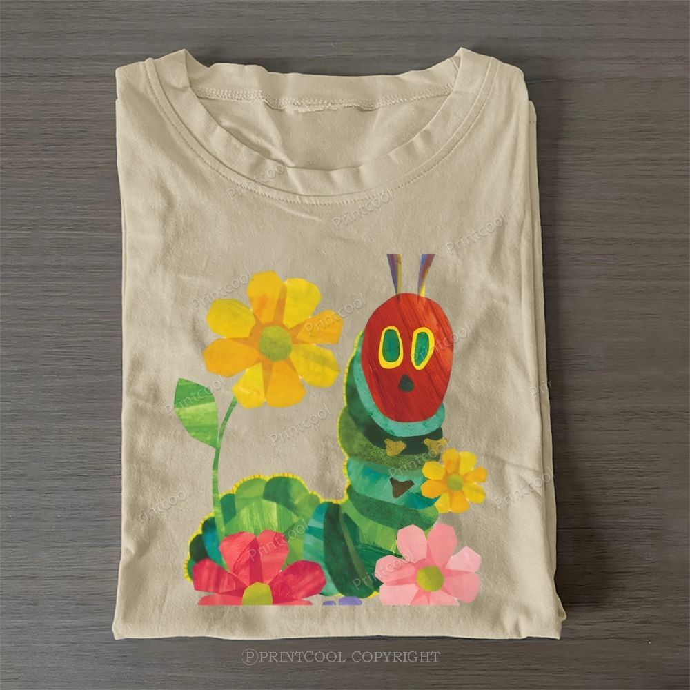 Caterpillar and Flower Collage Casual Cotton T-Shirt