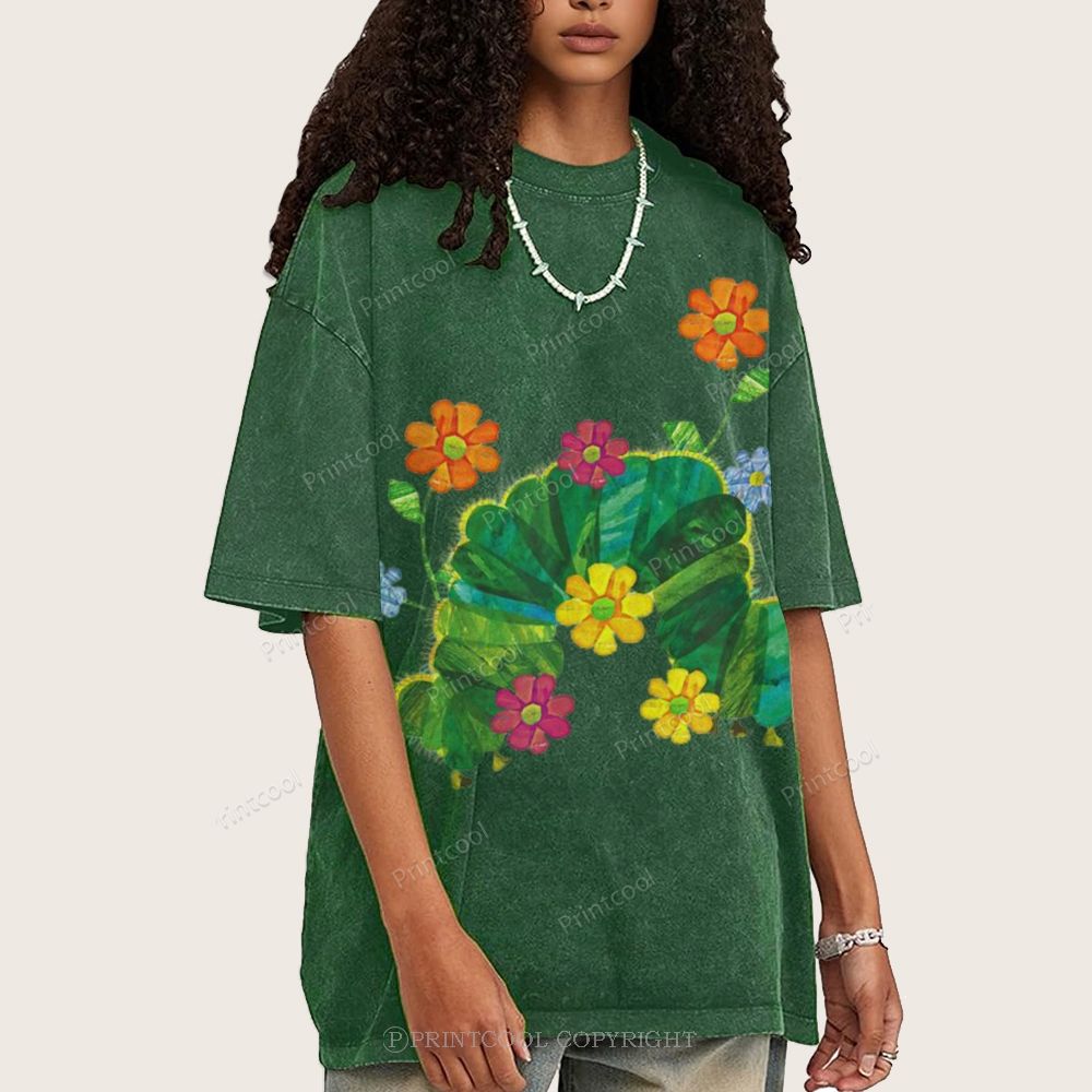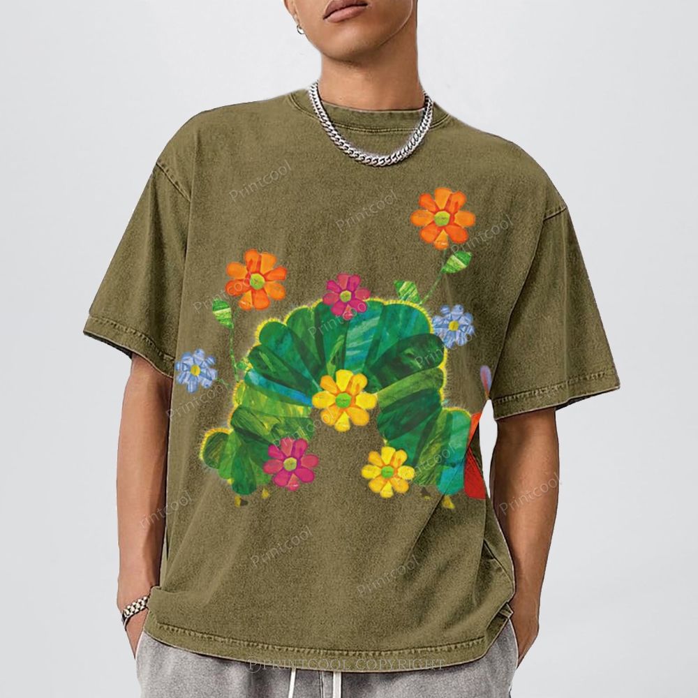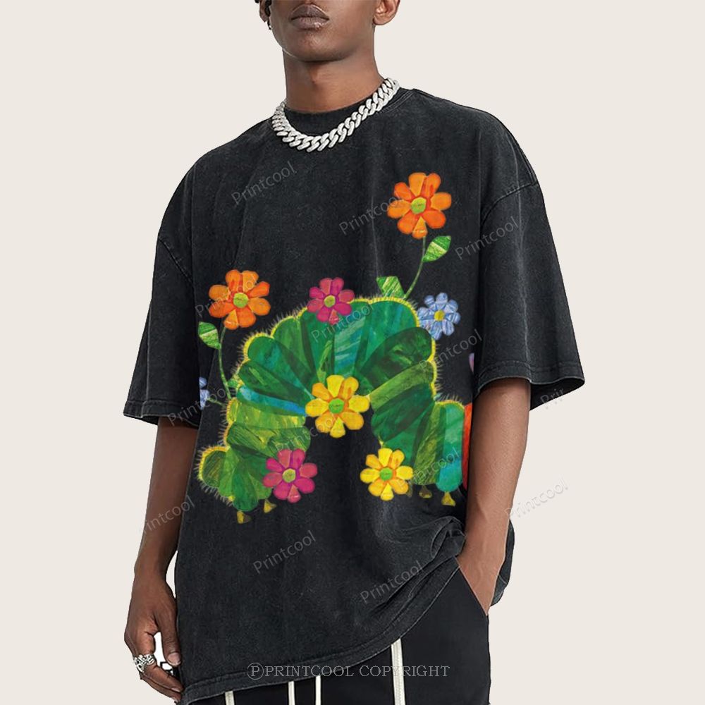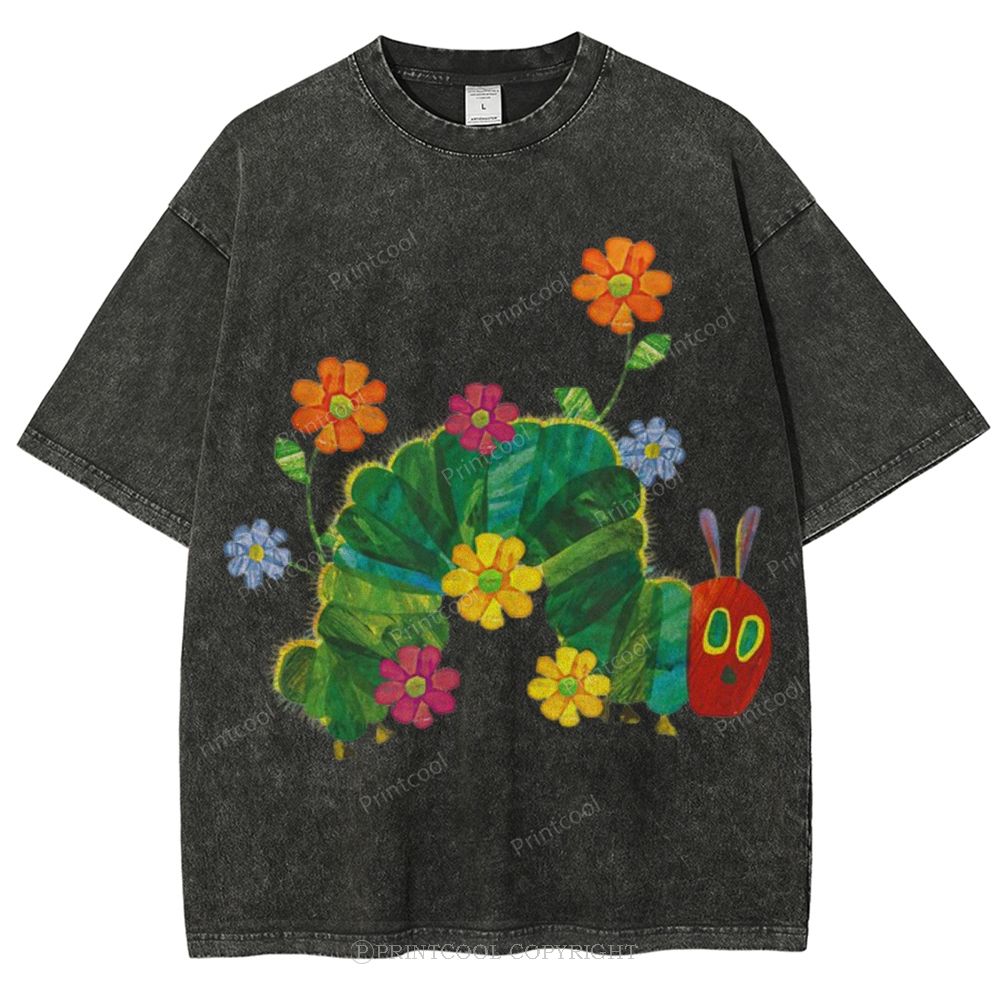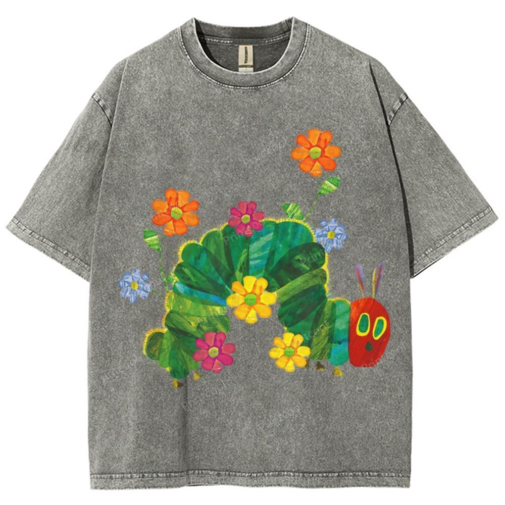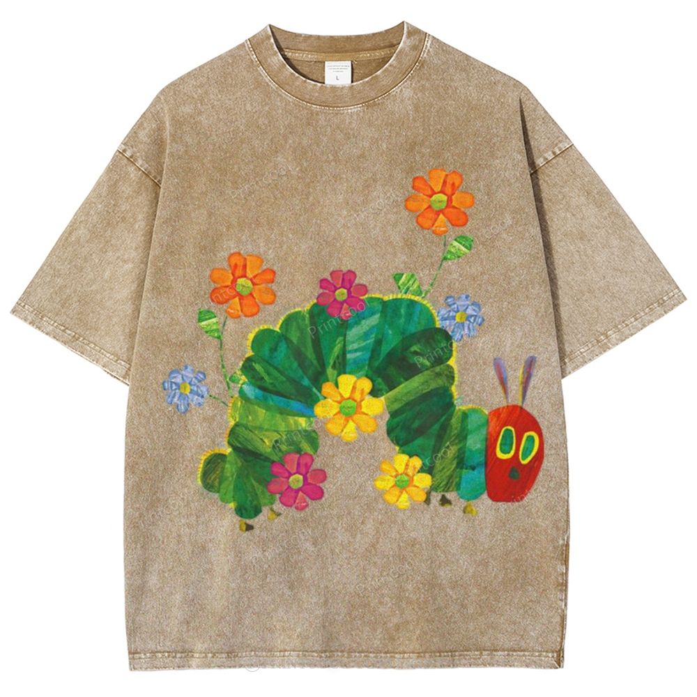 Caterpillars With Flowers On Their Bodies Unisex Vintage Washed Tee