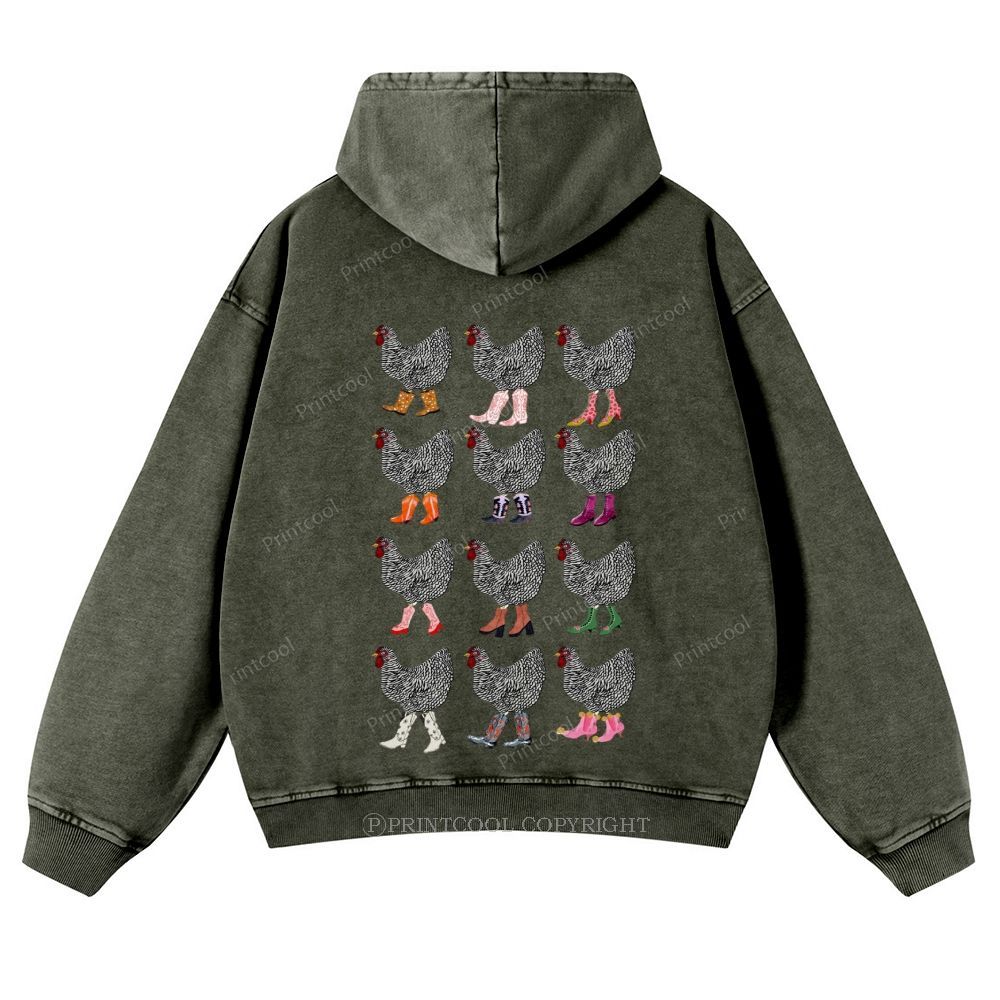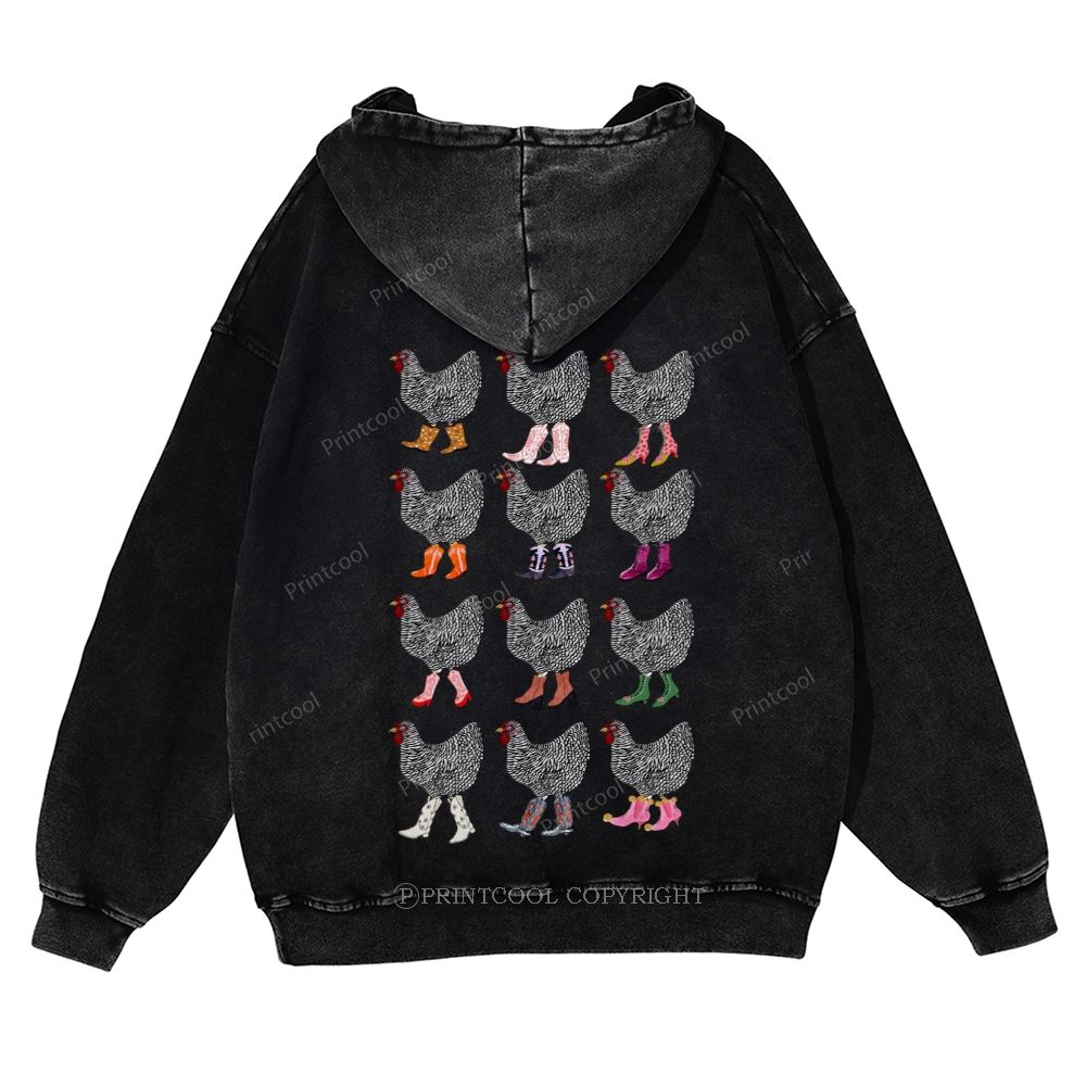 Chickens in Stylish Boots Collection Casual Washed Hoodie