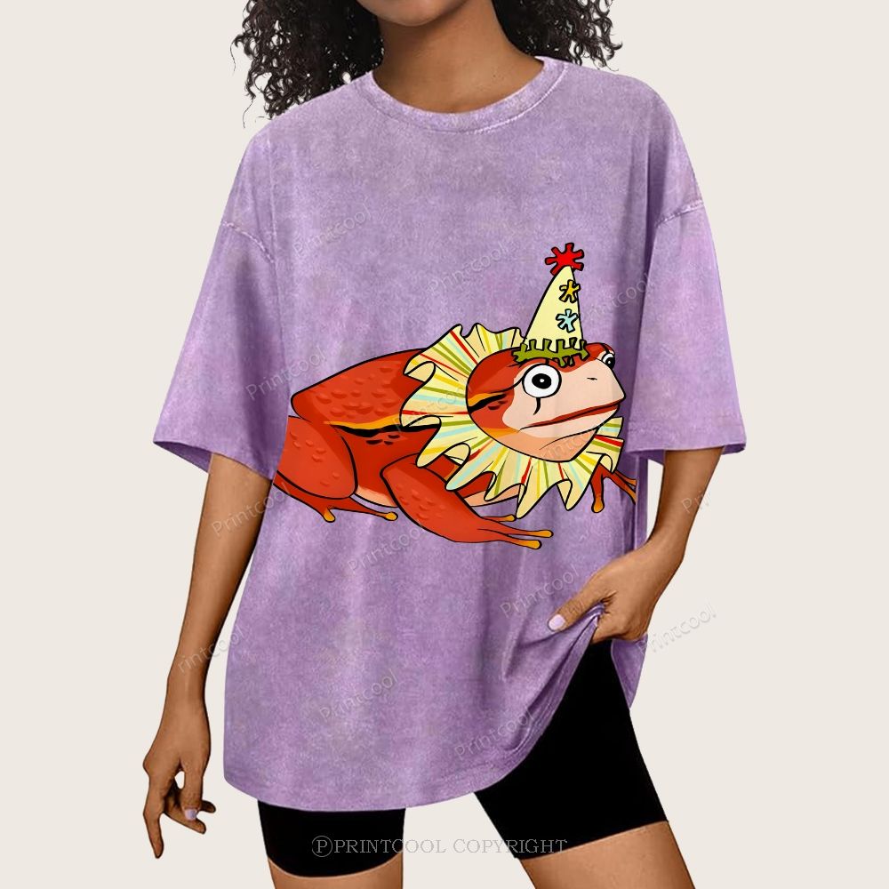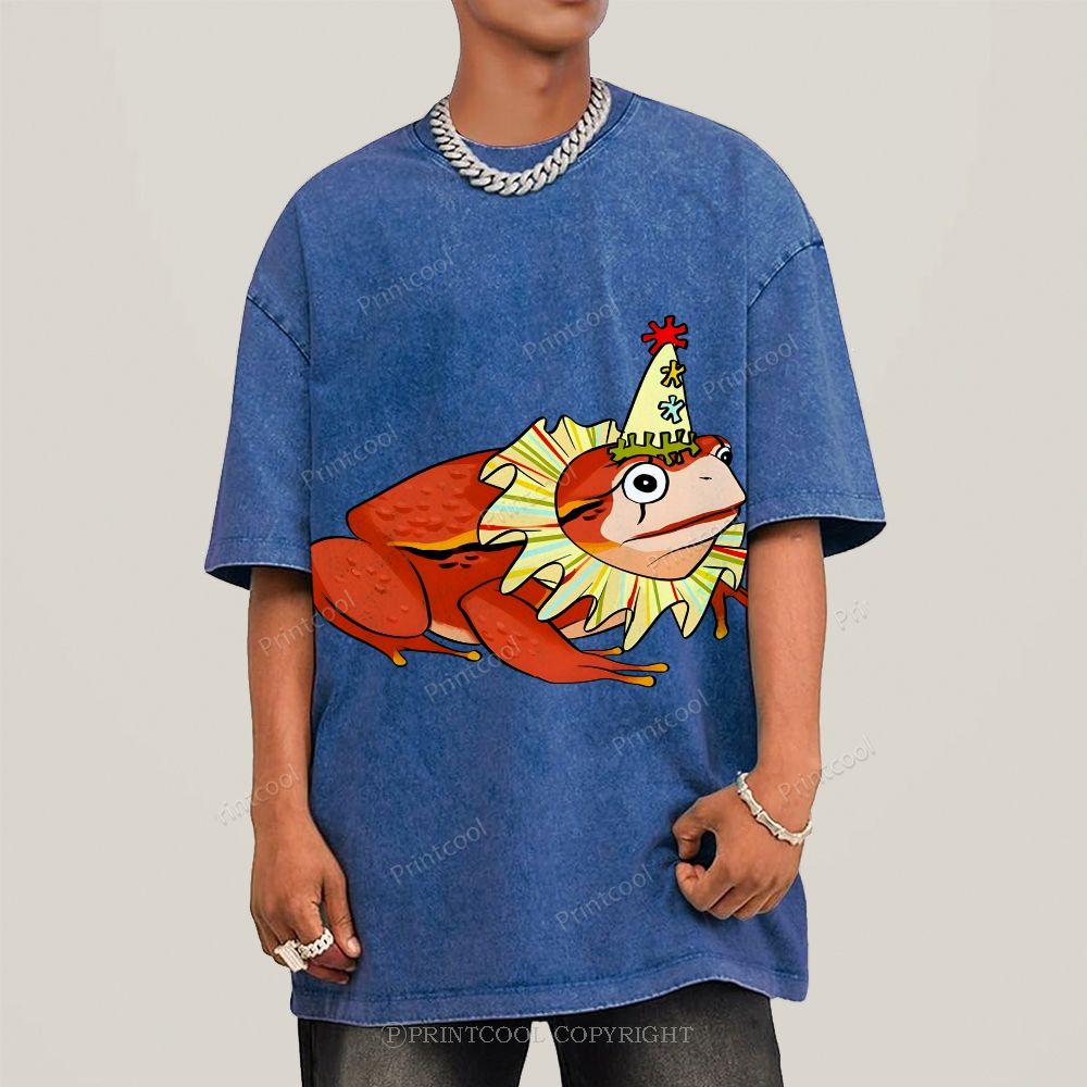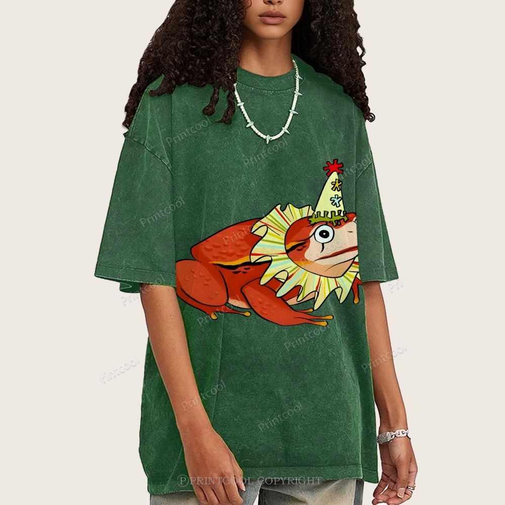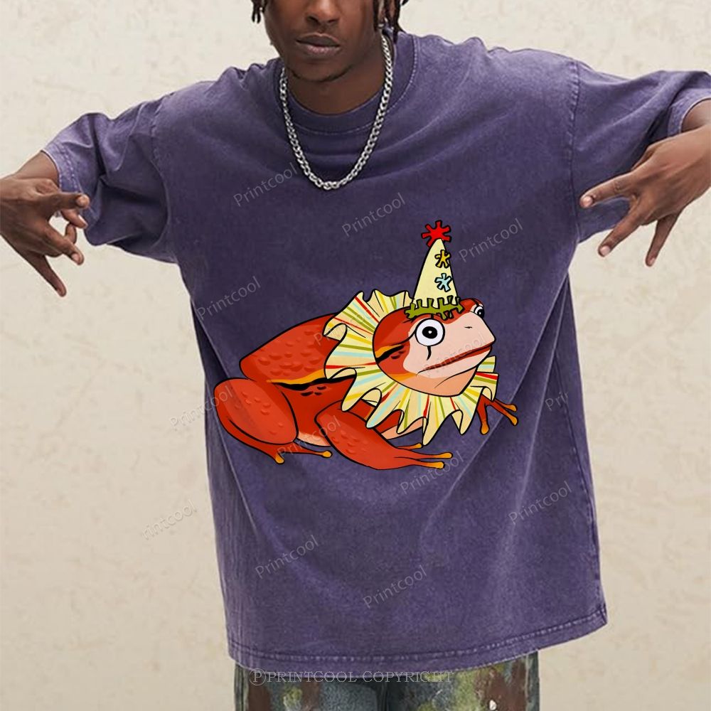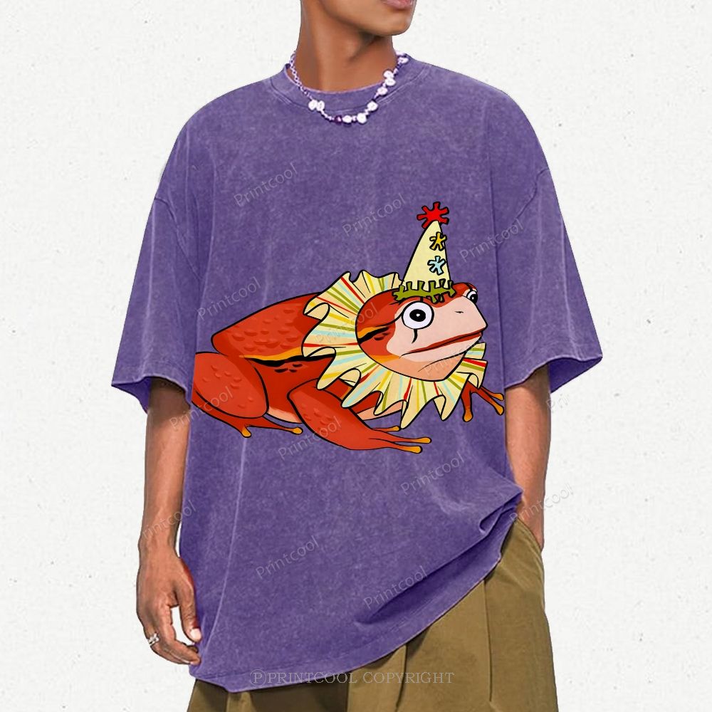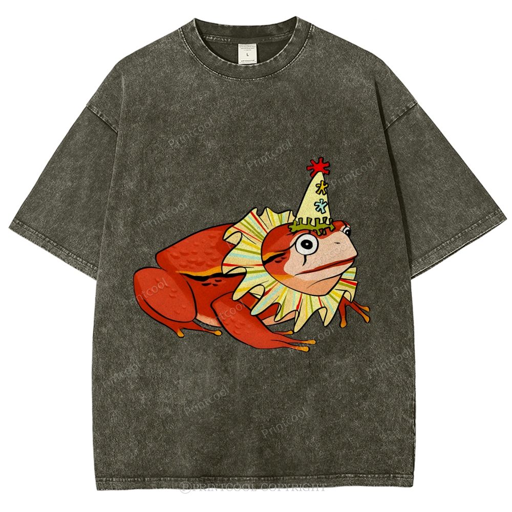 Circus Frog Friend Unisex Vintage Washed Tee